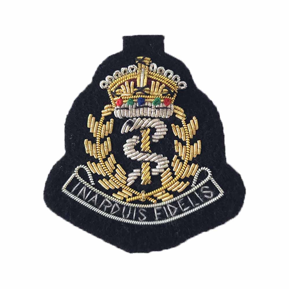 RAMC Officers Wire Embroided Cap / Beret Badge (Kings Crown) Navy Blue