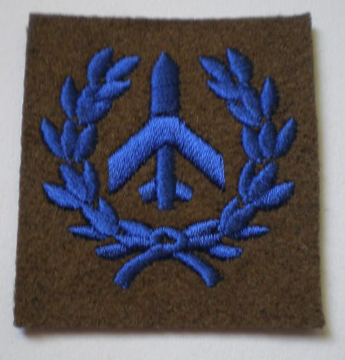 Official Description: Badge Qualification. Army. Aircraft Spotters, Class 1. Light Air Defence Regiments. Cloth.Embroidered. Blue on khaki.