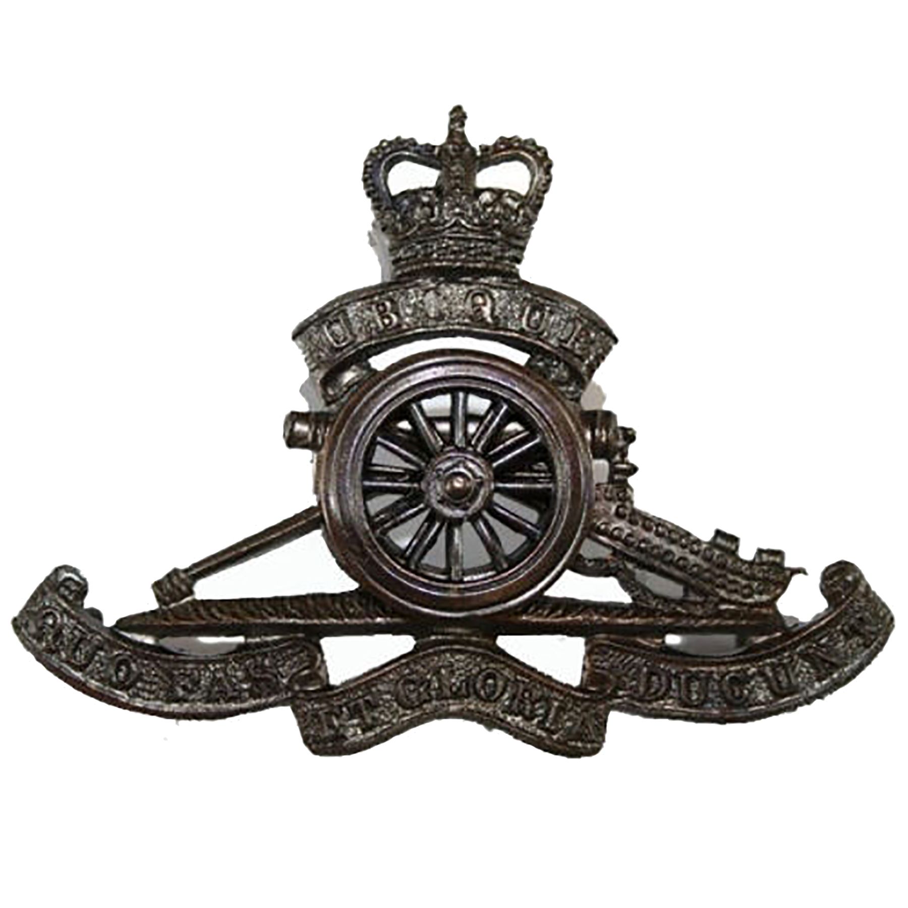 Official Description: Insignia, Organisational. Cap. Royal Artillery and Royal Horse Artillery. Gilding metal. Bronze finish. Used with No2 Dress.