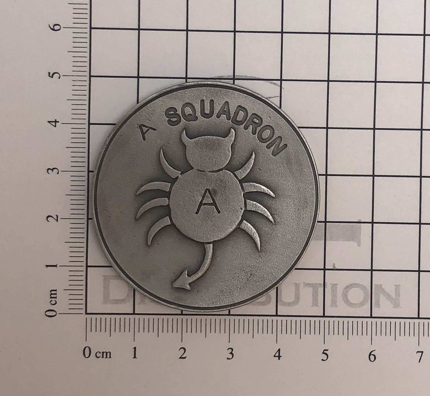 On the reverse of the coin has A Squadron's Bug Emblem on it