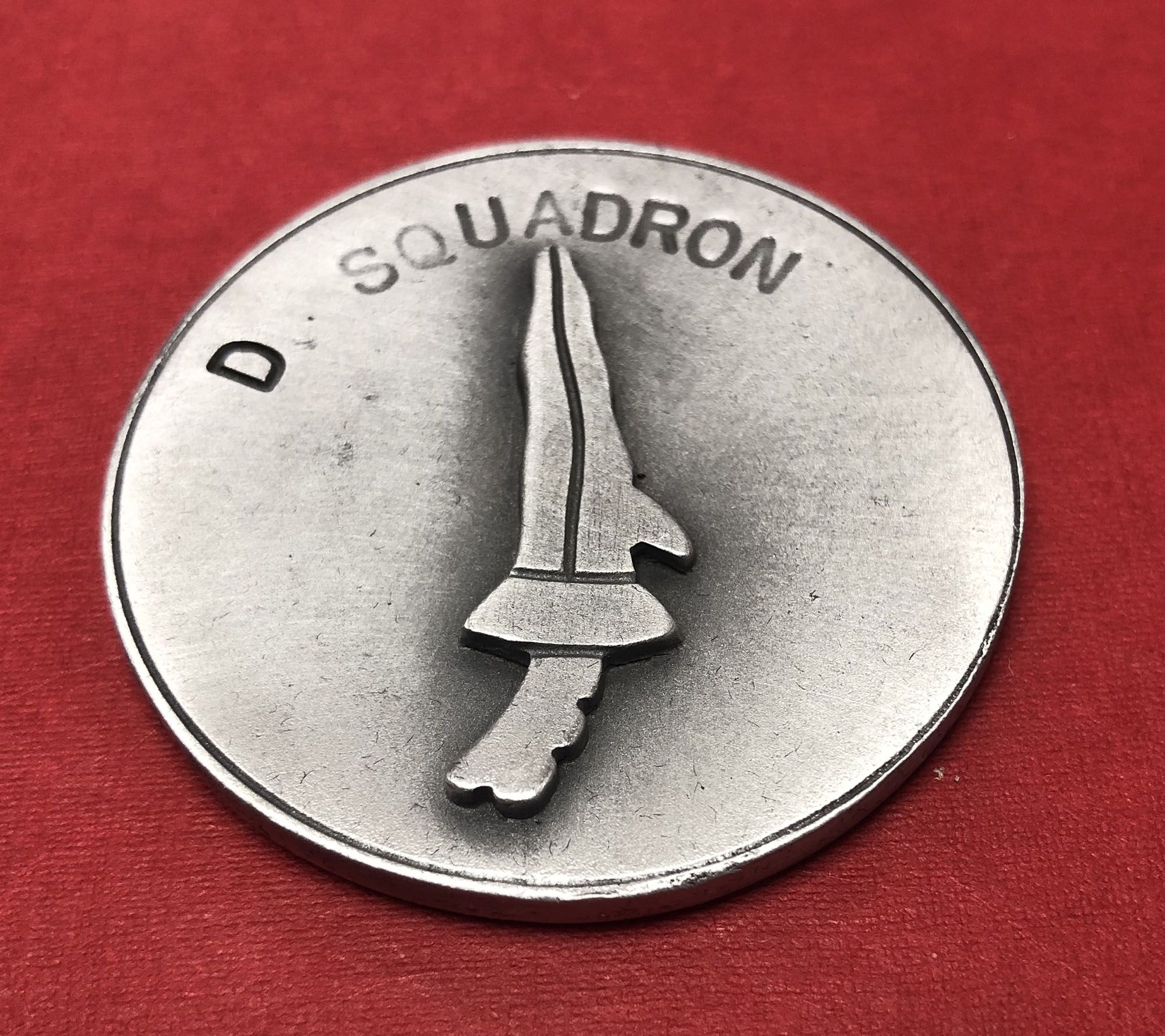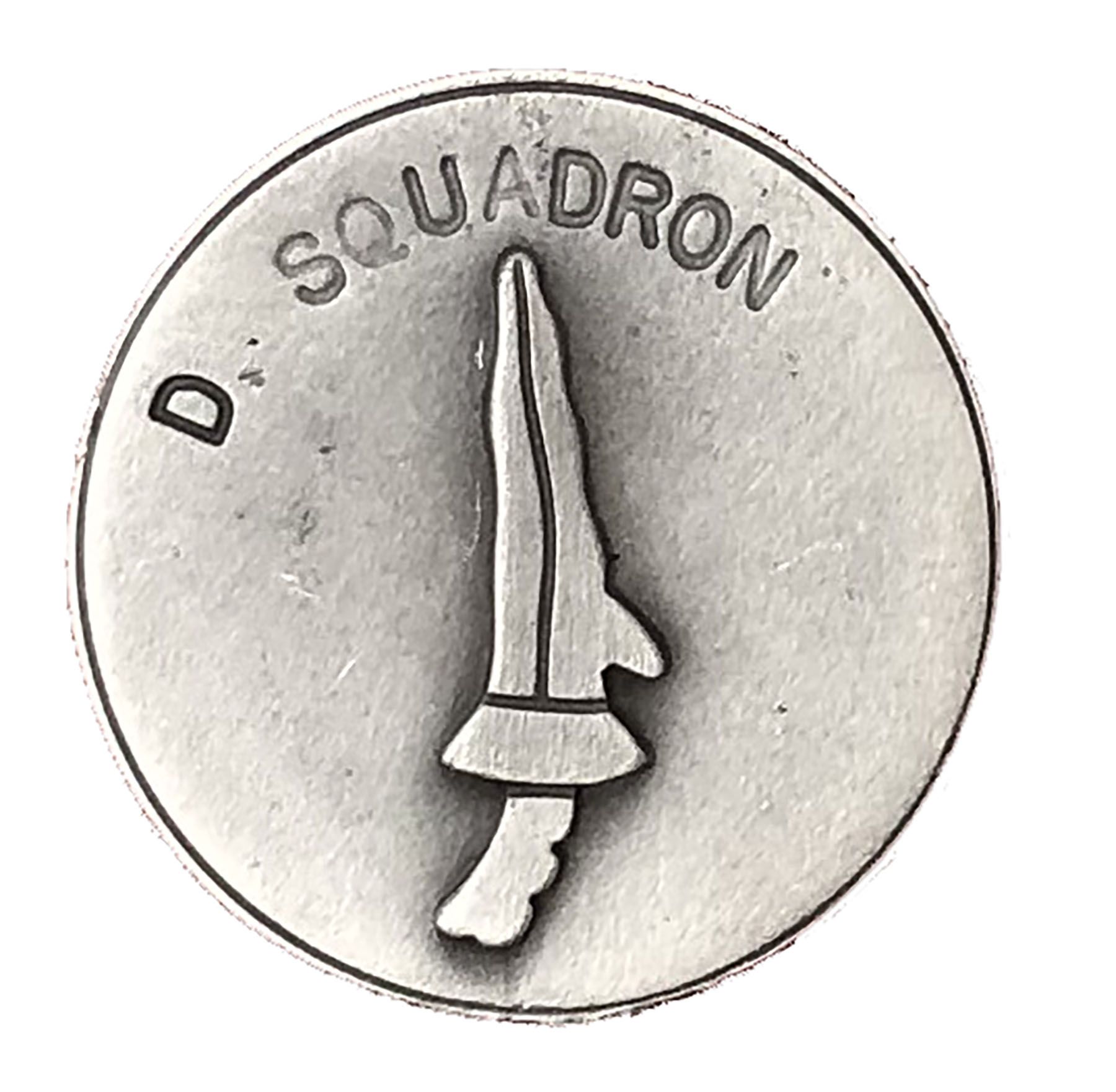 On the reverse of the coin has the Kris Blade with D Squadron around the top.