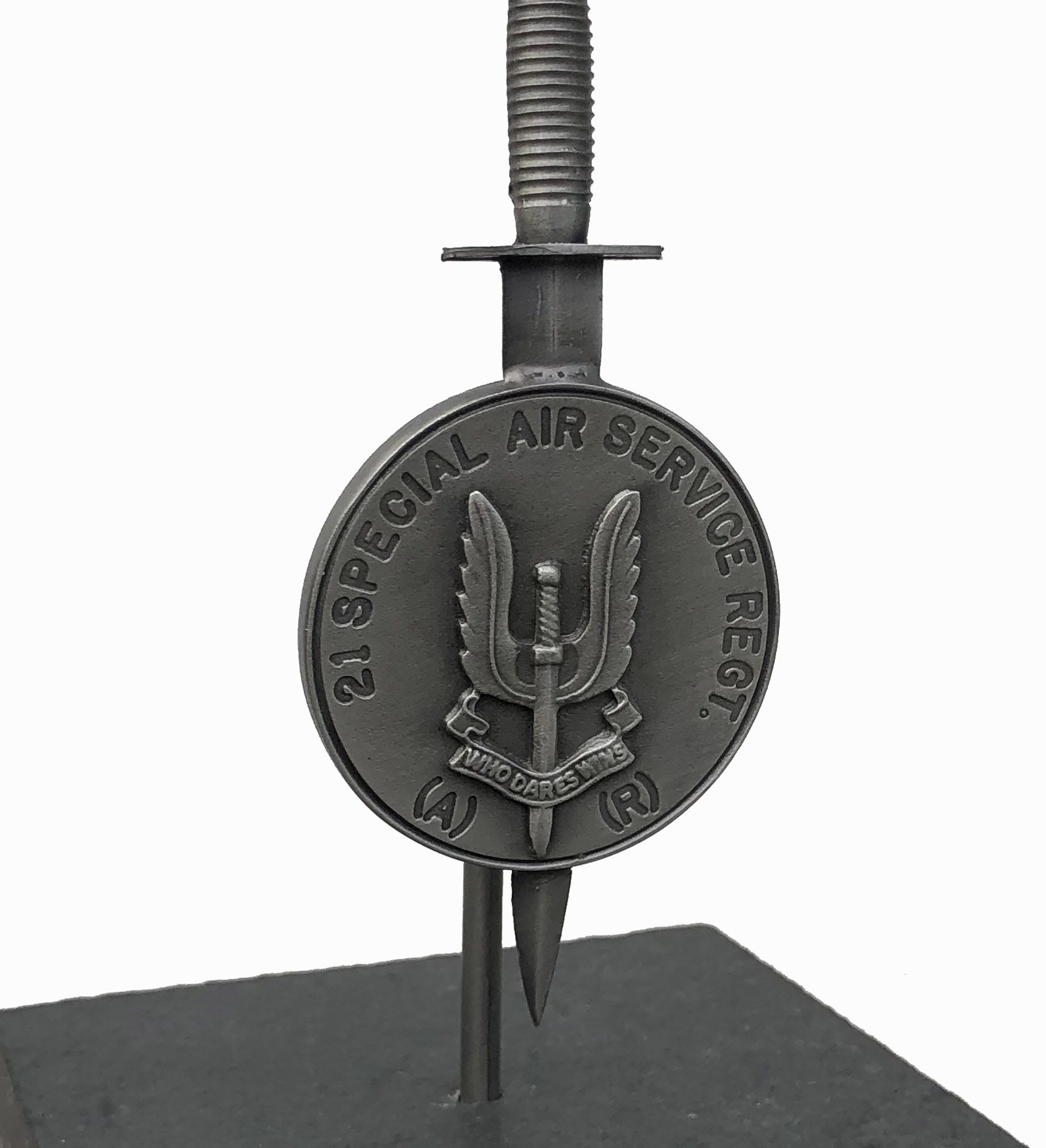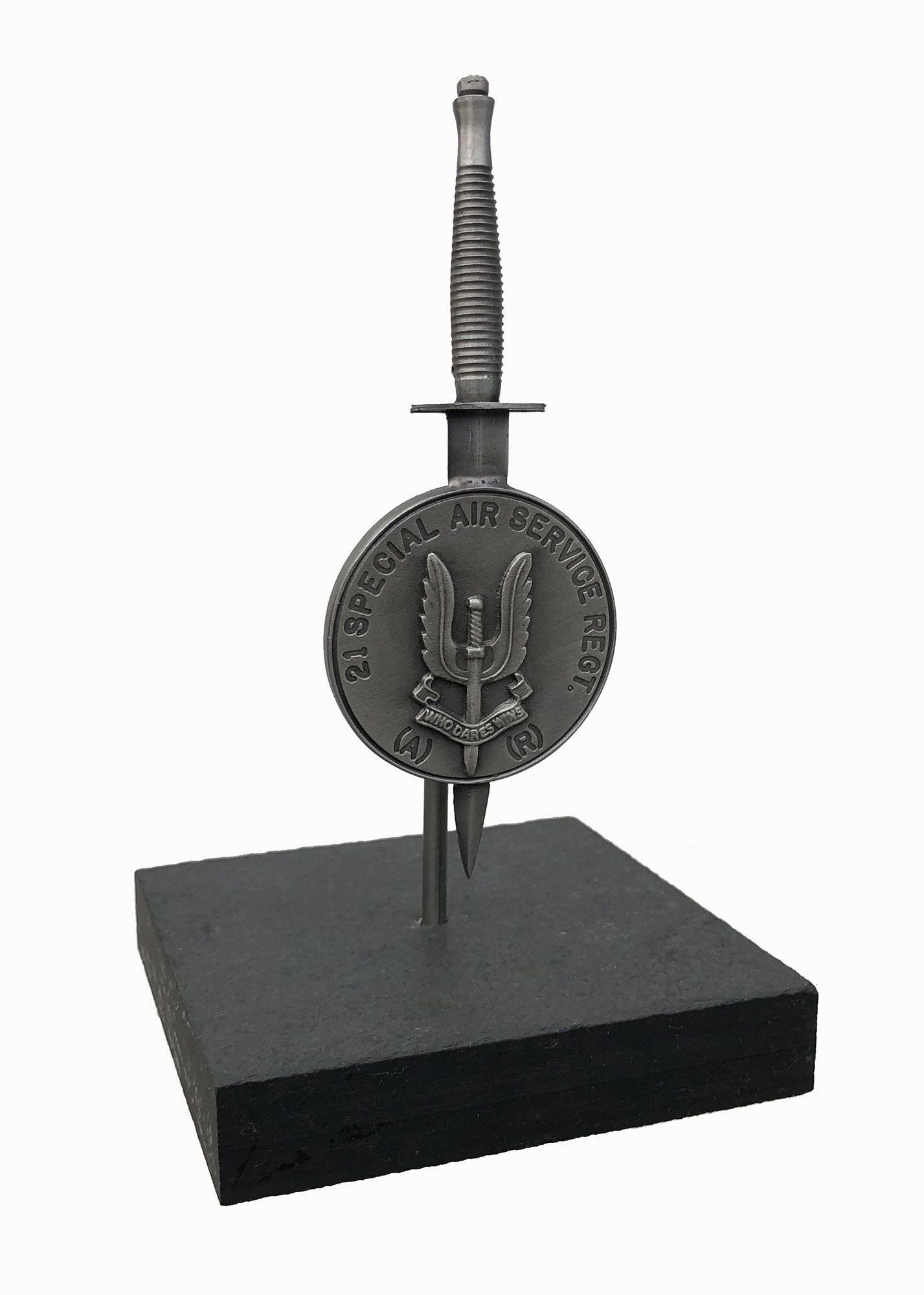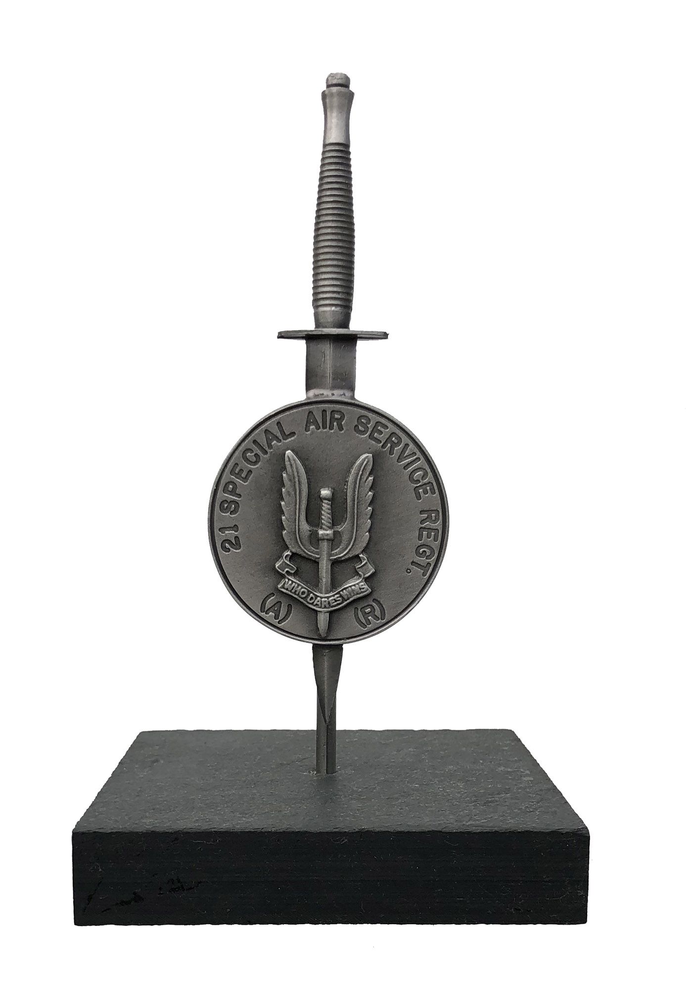 SAS 21 Special Air Service Regiment Pewter Coin Dagger Presentation (Slate Base)
