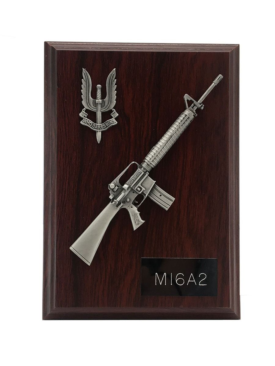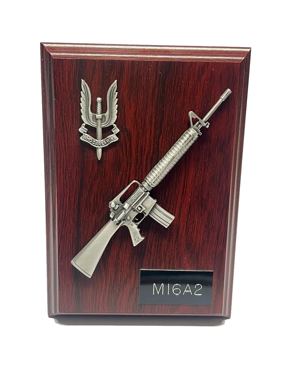 SAS Plaque M16A2 Rifle and Cap Badge in Pewter (6" x 4")