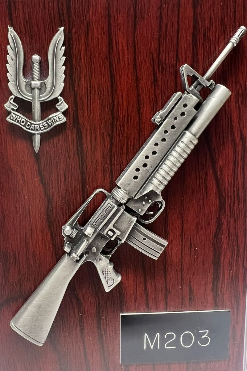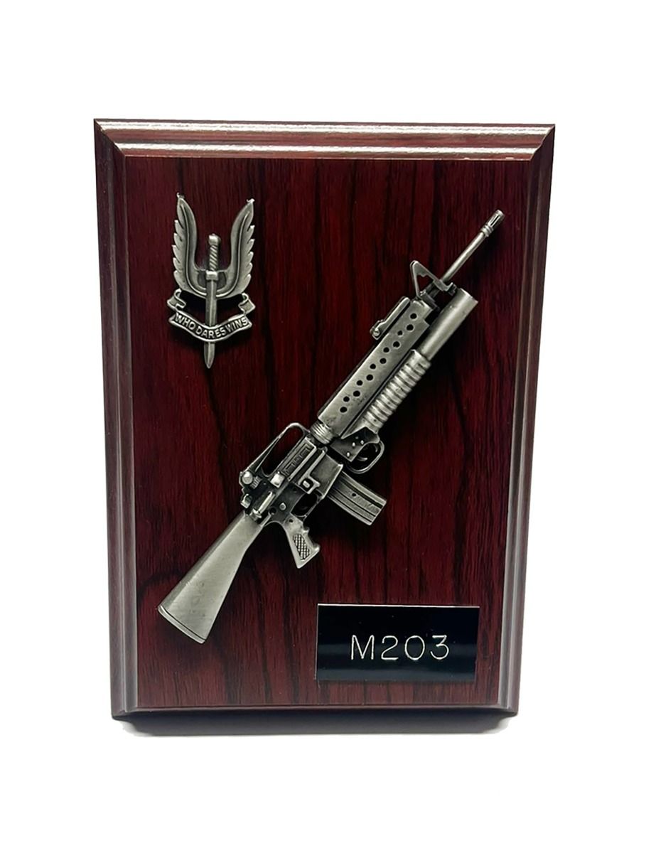 SAS Plaque M203 Rifle and Cap Badge in Pewter (6" x 4")