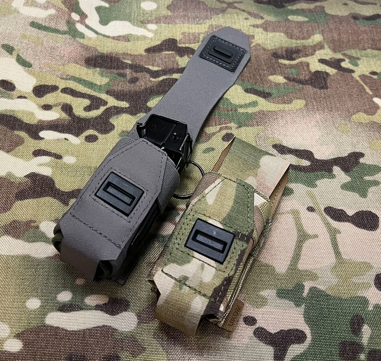 The UKOM Flash Bang/40mm Pouch offers secure, rapid access for flashbangs and 40mm grenades up to 4.5". Made from laser-cut Cordura, it features heavy-duty elastic and a magnetic closure for silent, secure use. Available in single, double, and triple configurations, this versatile pouch is designed with Tier 1 operators and made in the UK by UKOM.