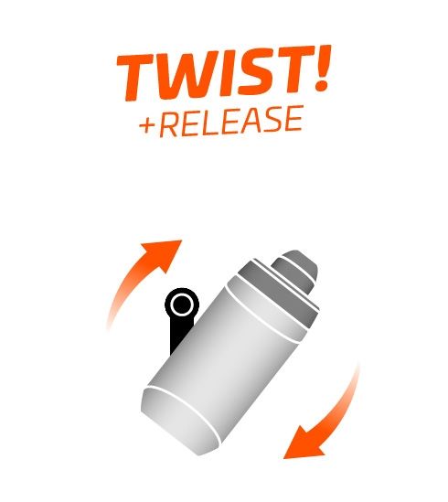 The small TWIST bottle 450 with an optimized easy squeeze thanks to a softer material and new bottle cap with a high flow, self-sealing and leak-proof valve and optional dirt cover.