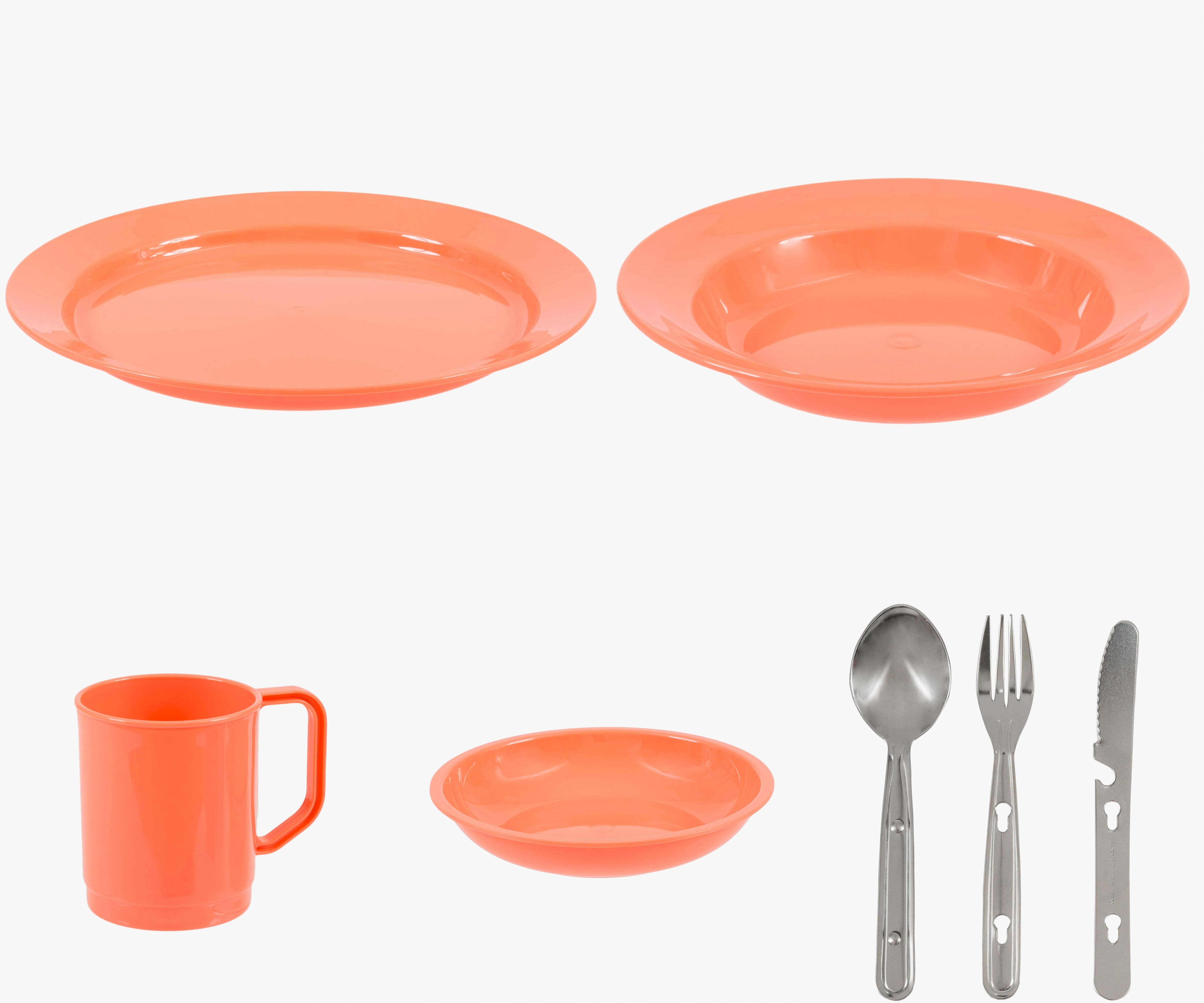 The dishwasher and microwave safe plastic plates and bowls are made from Polypropylene, and often described as unbreakable due to how hard wearing they are making them ideal for all activities