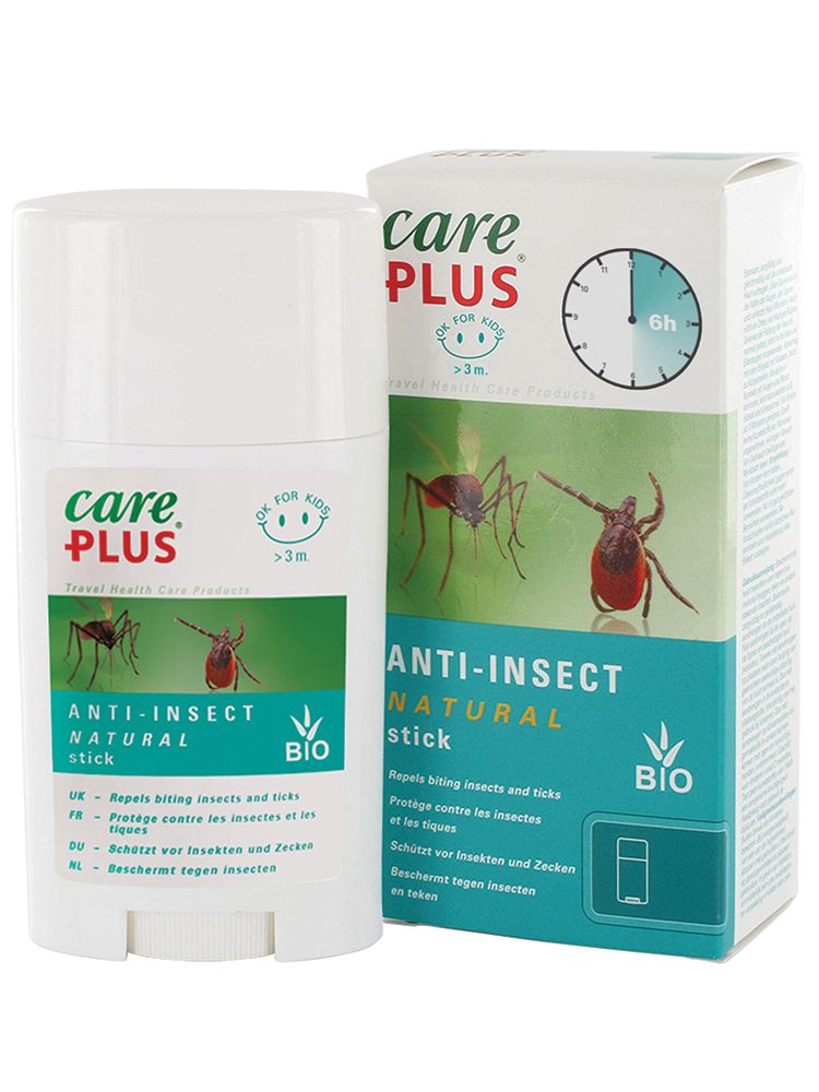 With the Care Plus® Anti-Insect Natural stick (malaria) mosquitos, ticks, midges and other stabbing insects don’t dare to come near you for at least 8 hours. The stick is easy to use, doesn’t leave any wet traces and is directly active. Handy travel size, hand luggage approved.