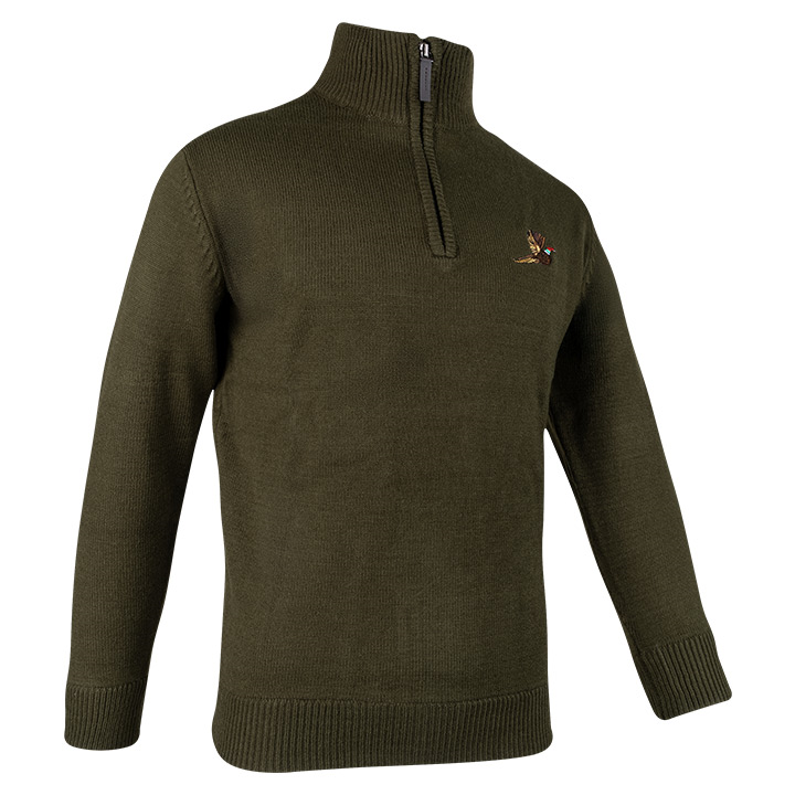 Jack Pyke Pheasant Zip Neck Pullover – Olive Country Sweater with Embroidered Logo