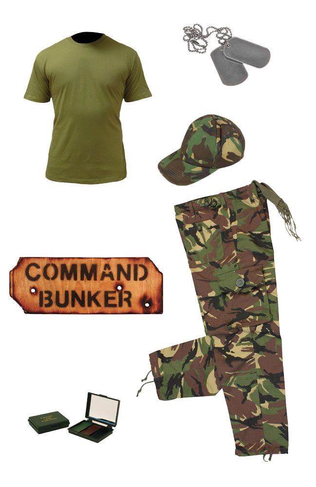 Kids Army Camo Pack 5 - Tshirt, Pants, Cap, Dog Tags, Camo Paint and Command Bunker Sign