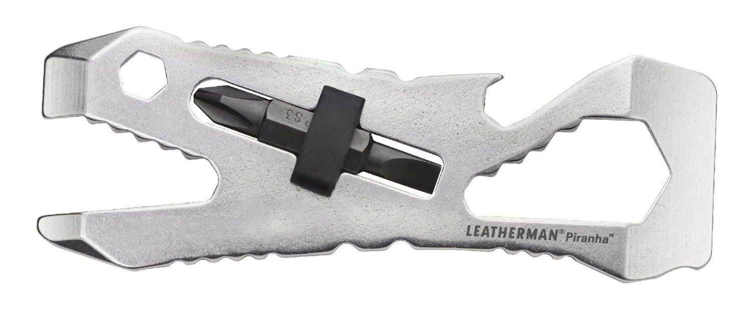 The Piranha 2 is a single-piece, multi-purpose pocket tool constructed from heat-treated, 100% stainless steel. A built-in rubber bit holder secures a Leatherman bit. Like the fish for which it's named, the Piranha pocket tool will help you get the job done quickly: tightening screws, loosening bolts, prying things open and popping the top on your favourite beverage. And, since you'll barely notice this super slim multi-tool in your pocket, it's perfect for everyday carry. It's also TSA-compliant so there is no need to worry about it when you board your next flight.