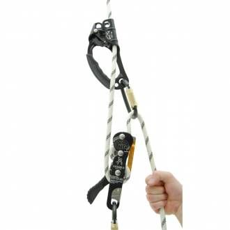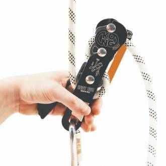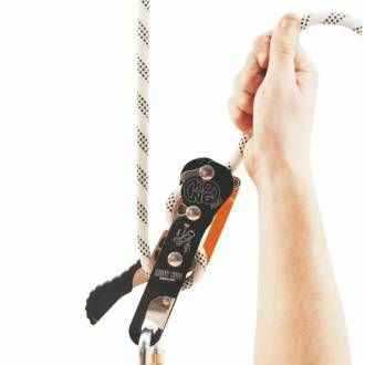 Certified for two people, it allows the lowering of two people at the same time. It allows to take in slack the rope.