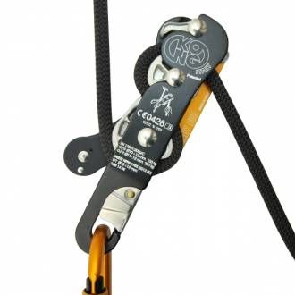 It allows descent at a controlled speed, stopping at any time, hands free, on a static rope (EN 1891) or dynamic rope (EN 892).