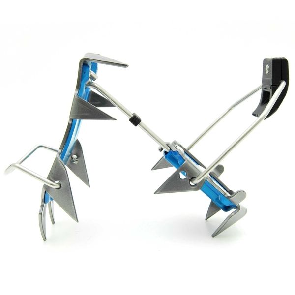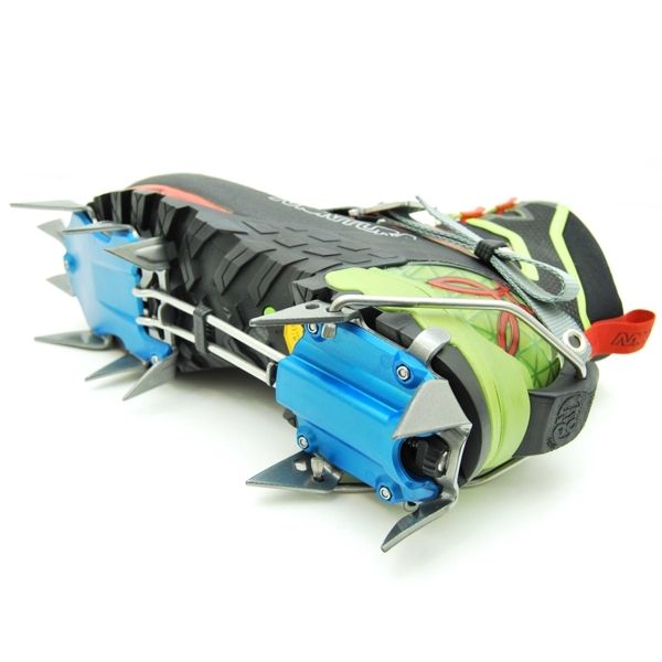 • Innovative rigid/foldable connection system which allows the crampon to bend on itself, reducing the overall dimensions for transport. At the same time, it ensures maximum shoe stability and reliability during progression.