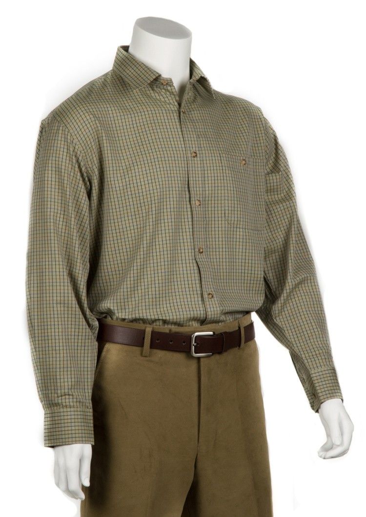 Mens long sleeve check shirt with a placket front and single button through chest pocket.