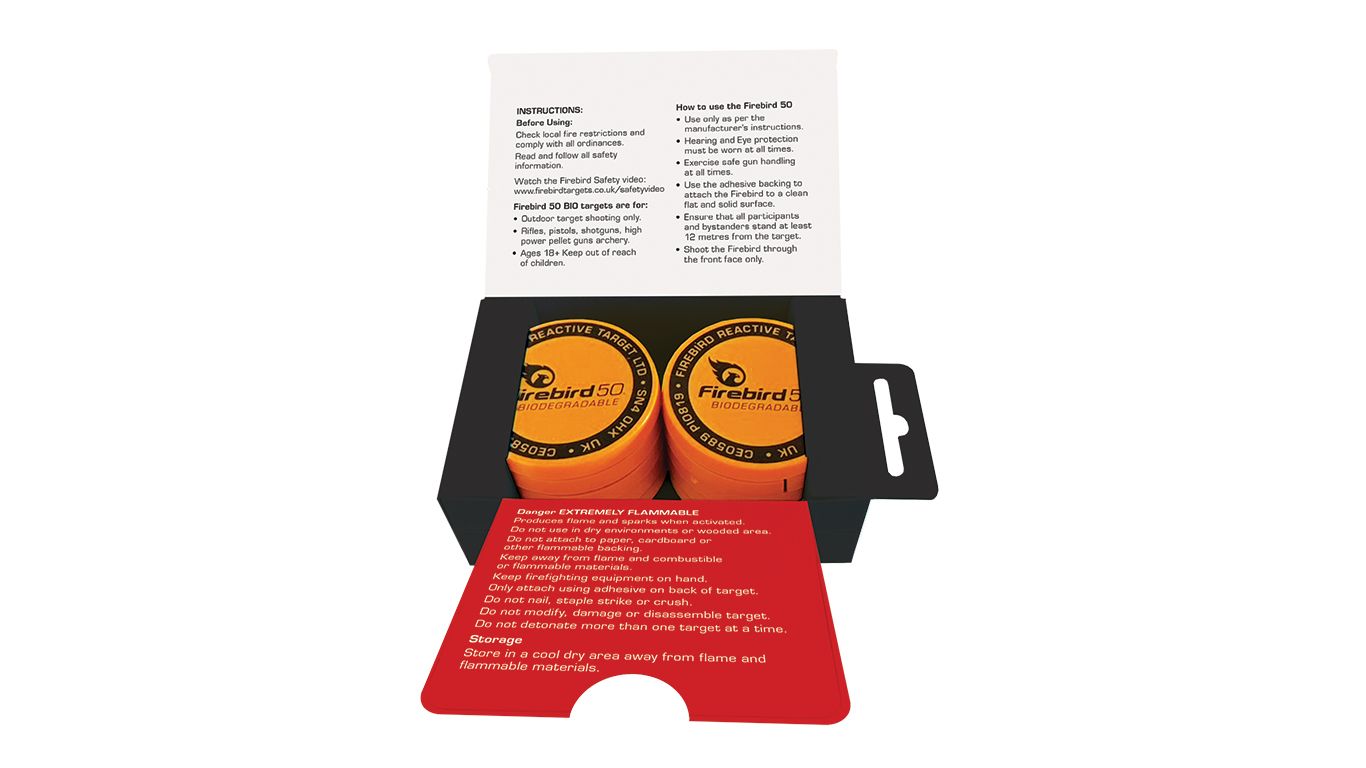 Firebird Bio targets are designed for us at short (over 50 feet), medium and long ranges with rifles, shotguns, archery and air rifles. One target suits all! They can even be fixed into moving targets such as clay pigeons and clay rabbits without affecting their performance in the trap.