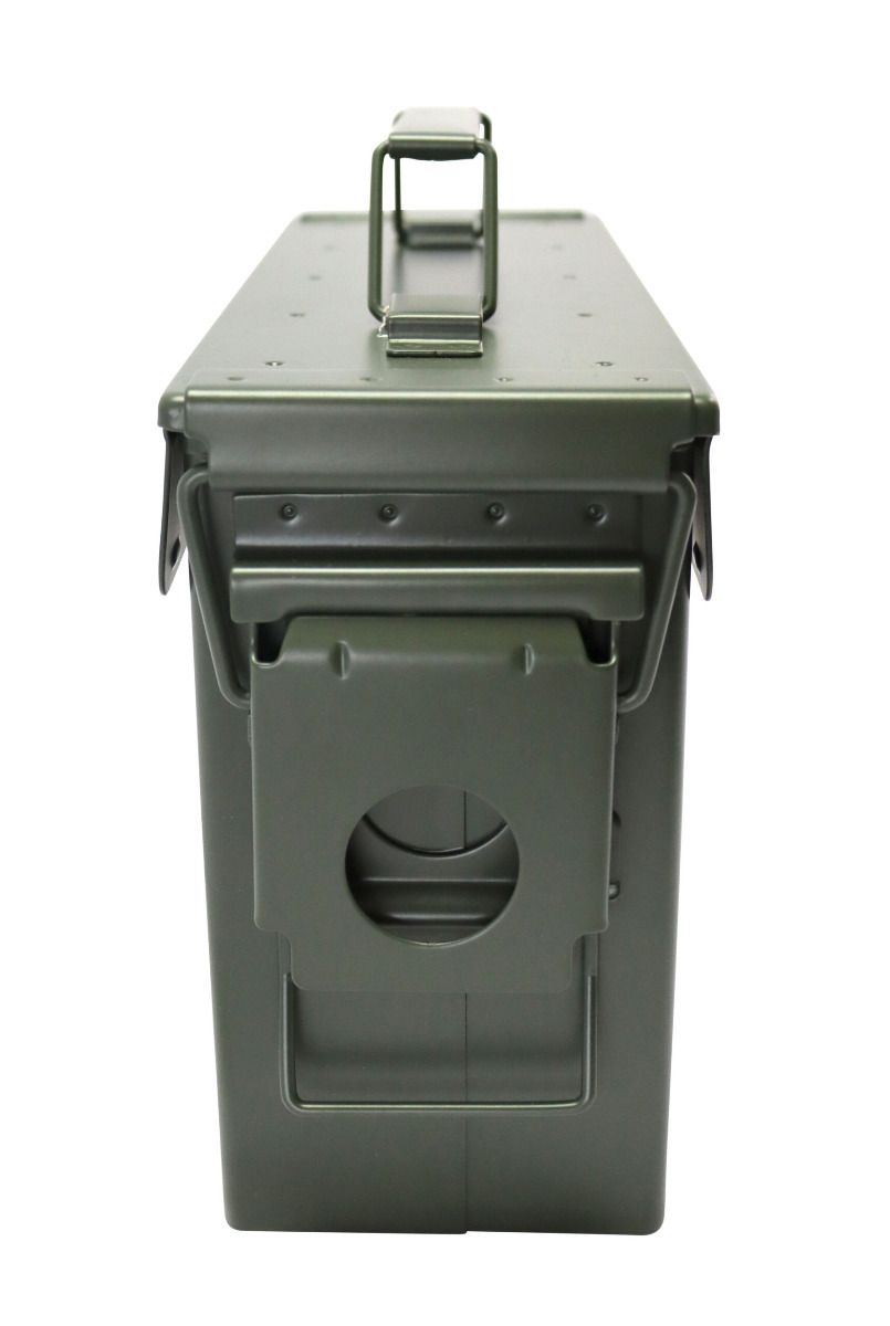 This durable metal ammo tin is designed to store and protect .30 caliber ammunition. Made from heavy-duty materials, it is waterproof and rust-resistant, ensuring long-lasting performance. The secure latch and seal keep contents safe from moisture and dust, making it ideal for military, outdoor, and long-term storage. Its portable and reusable design adds convenience for a variety of uses.