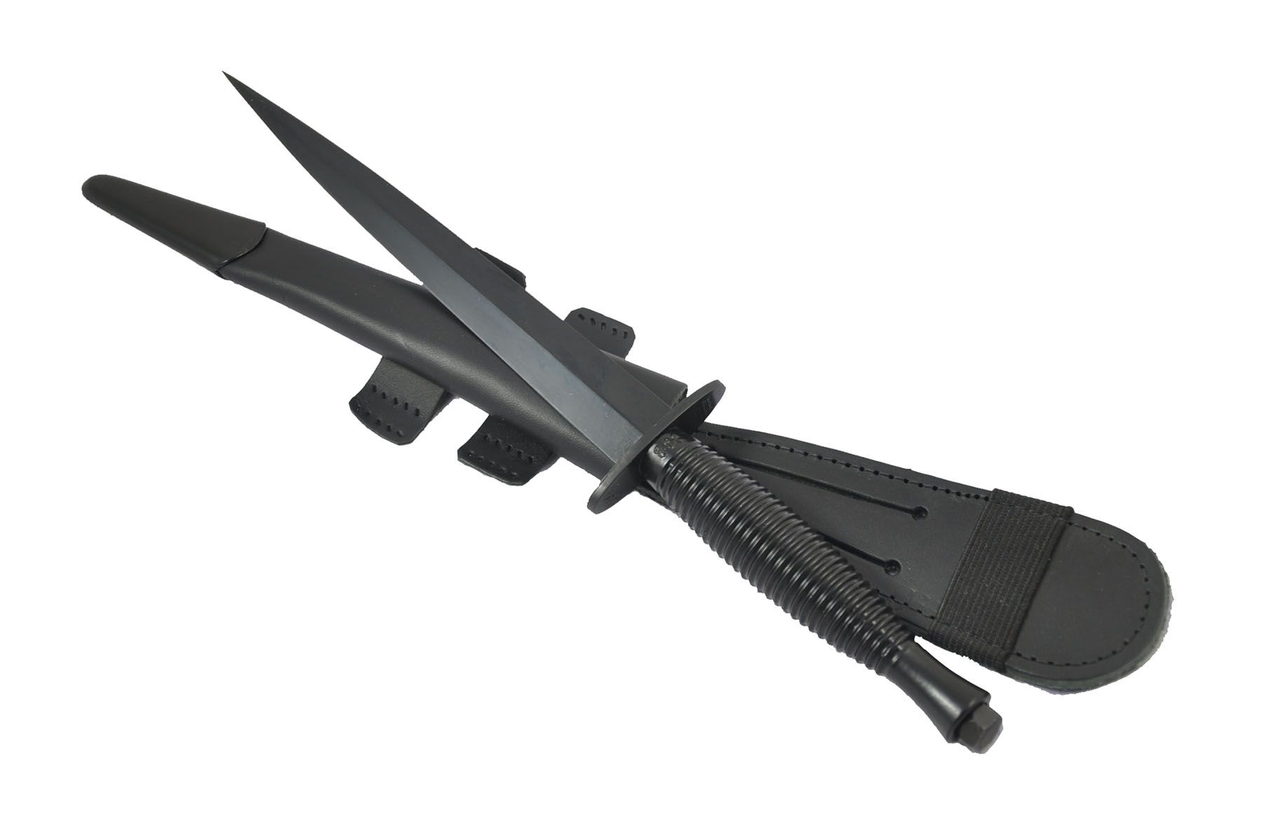 Genuine Fairbairn Sykes Commando Knife - Blackened Blade + Leg Sheath