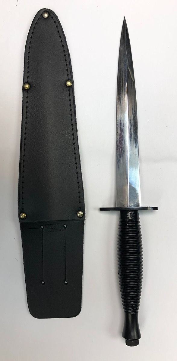 Genuine Fairbairn Sykes Commando Knife - Bright Carbon Steel Blade + Belt Sheath
