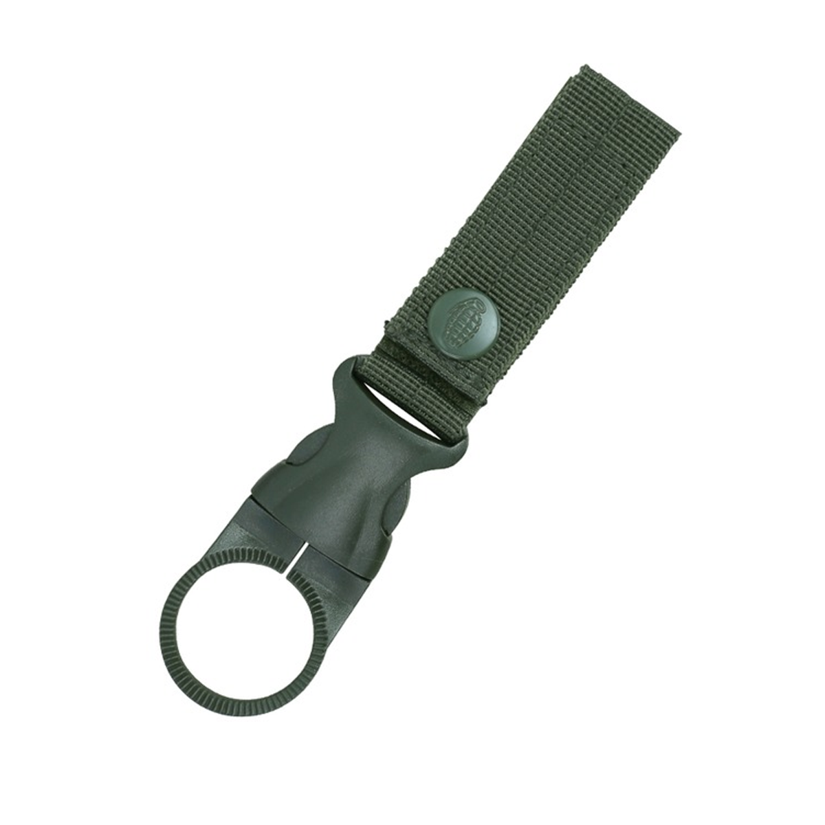 The "Tactical Bottle Holder" is a convenient and lightweight method for carrying soft drink bottles, featuring a tactical buckle attached to nylon webbing for easy attachment to belts or Molle systems, and it can hold up to a 1-liter bottle.
