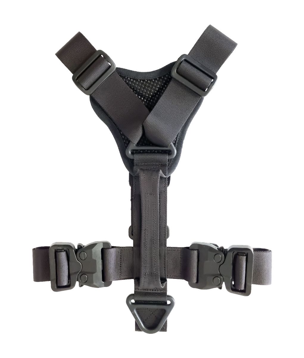 Webbing Tracking Harness with Cobra Buckle is made from military specification materials throughout, built for strength this harness uses 6000lbs breaking strain 45mm webbing and with a Parachute V Ring that is rated to 5000lbs. Fitted with ITW Nexus GT Cobra buckle designed to be more robust than any other type of plastic hardware on the market, with a targeted tensile load of 500lbf which is a 100% Polymer system with no metal components.