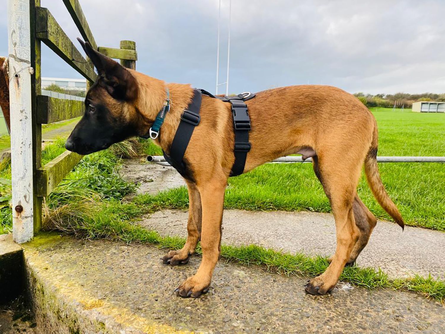 This harness is ergonomically designed to ensure Police Dogs in training are using the correct harness.