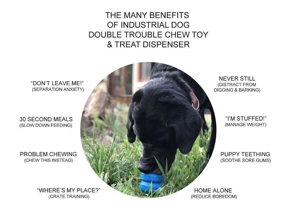 DURABLE CHEW TOY: The Double Trouble Toy is designed to withstand the abuse of most "power chewer" dogs.