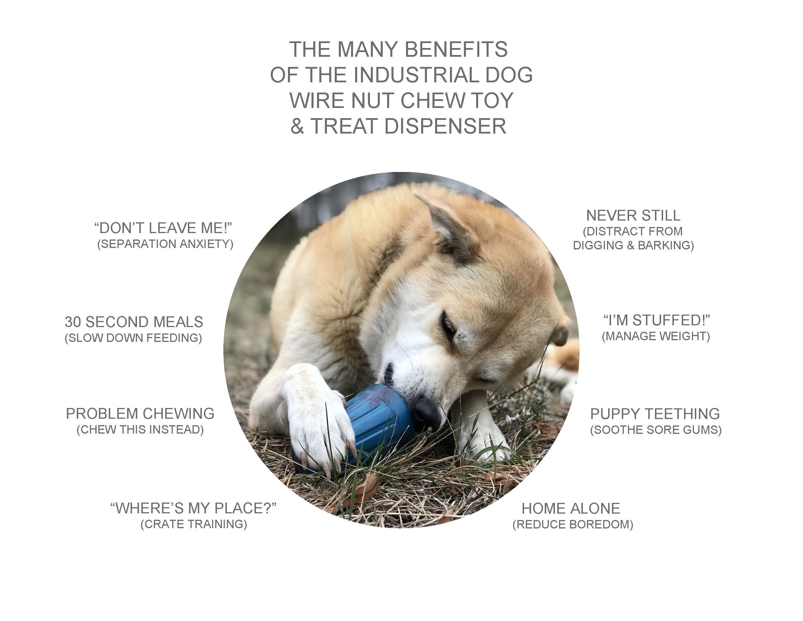 Dispenses Treats: Help your dog fight boredom by filling the Wire NutToy with treats like kibble, canned dog food, peanut butter, or your favorite dog treat recipe. Best results: mix wet/dry foods. Freeze with treats inside to prolong use.