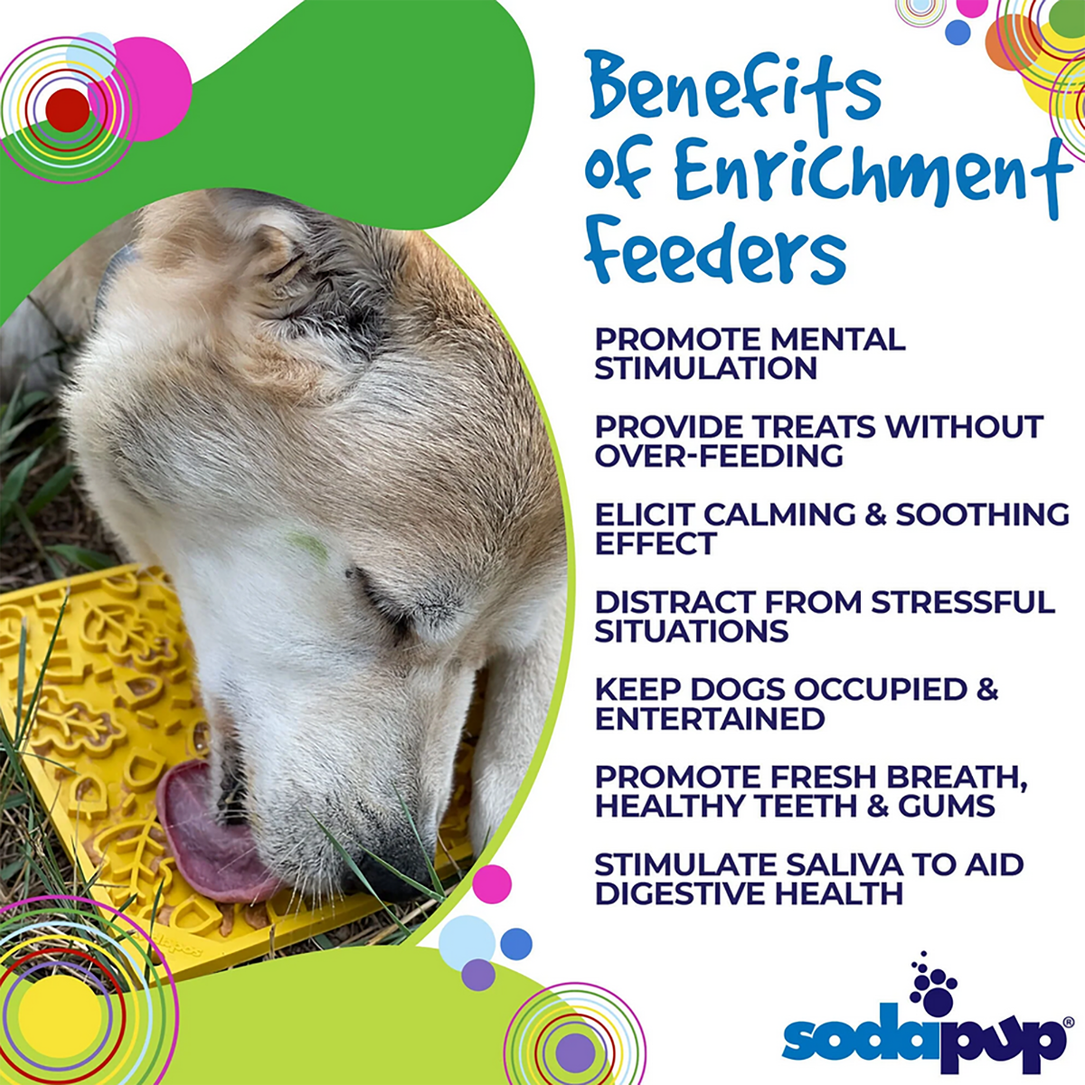 This SodaPup Lickmat enriches and soothes your dog. Calms your dog through licking.