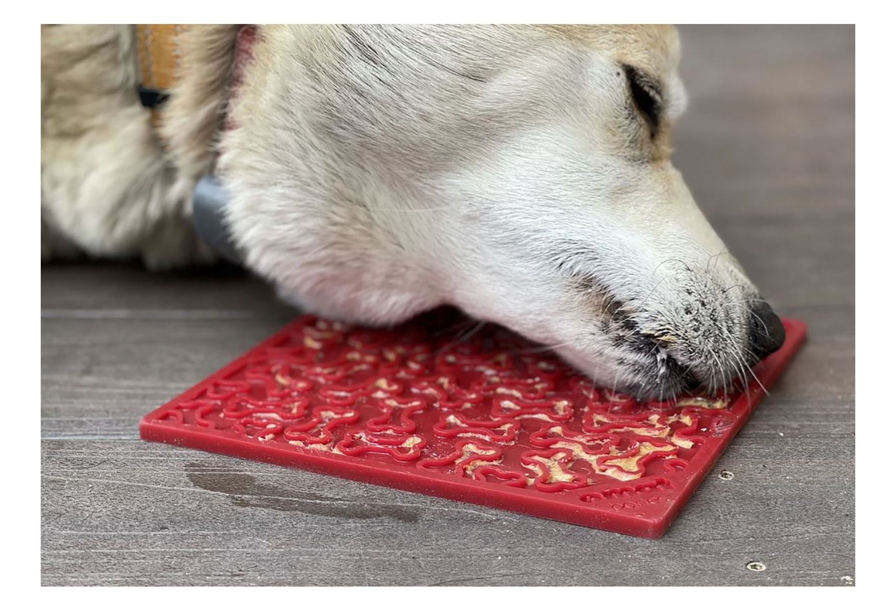 SodaPup Lick Mat Enrichment EMAT with Bones Design - Red - Large