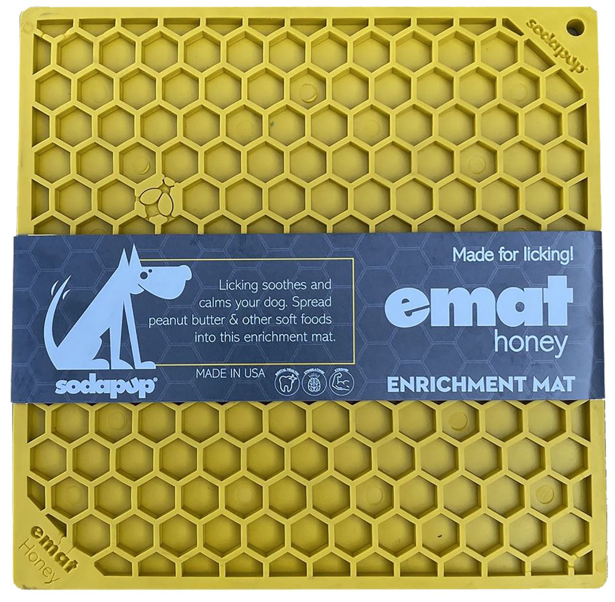 SodaPup Lick Mat - Enrichment EMAT with Honeycomb Design - Large - Yellow
