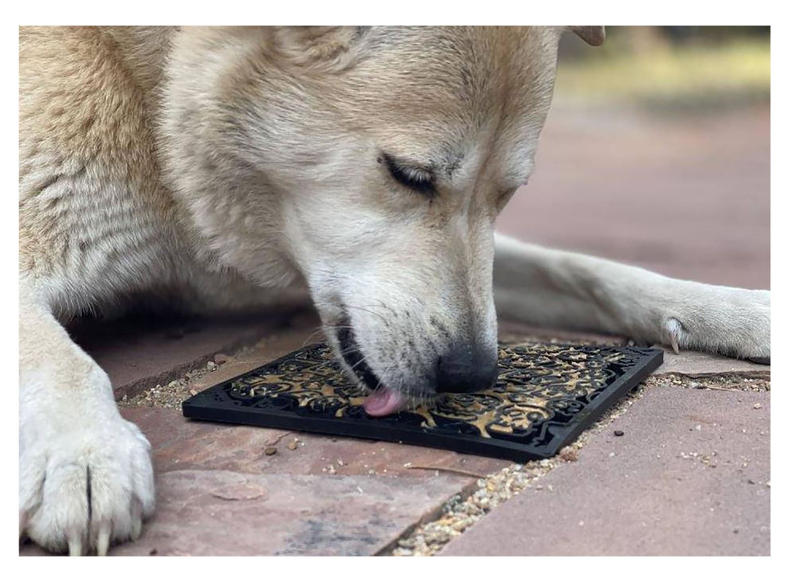 ENRICHMENT: Licking soothes and calms your dog. Spread your pet’s favorite soft treat across the surface of the emat, ensuring the treat is pushed down into the surface of the mat.