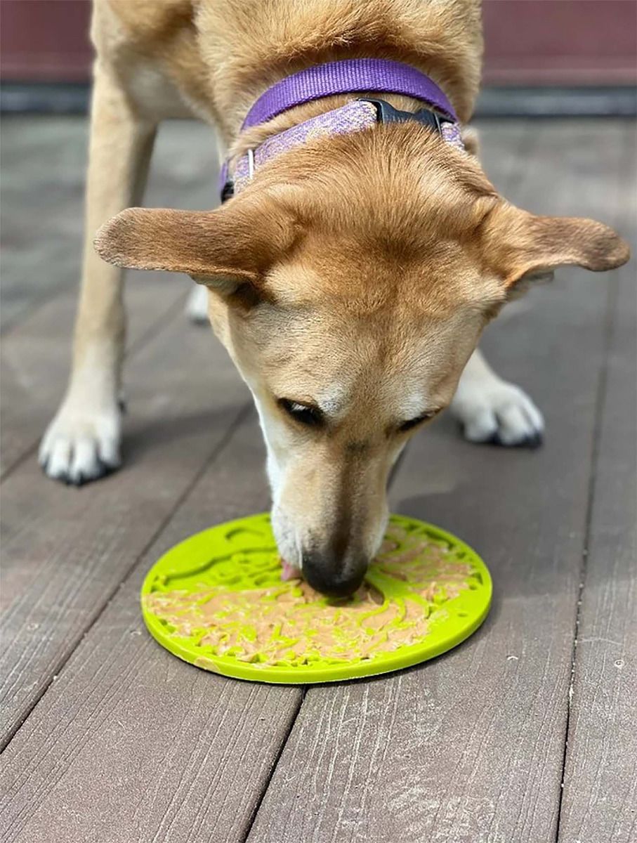 ENRICHMENT: Licking soothes and calms your dog. Spread your pet’s favorite soft treat across the surface of the mat, ensuring the treat is pushed down into the surface of the mat. This emat is the perfect enrichment tool for your dog.
