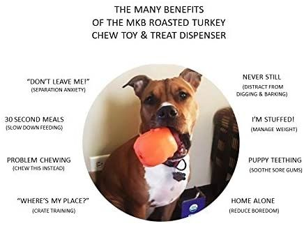 DISPENSES TREATS: Help your dog fight boredom by filling the Roasted Turkey Toy with treats like kibble, canned dog food, peanut butter, or your favorite dog treat recipe. Best results: mix wet/dry foods. Freeze with treats inside to prolong use.
