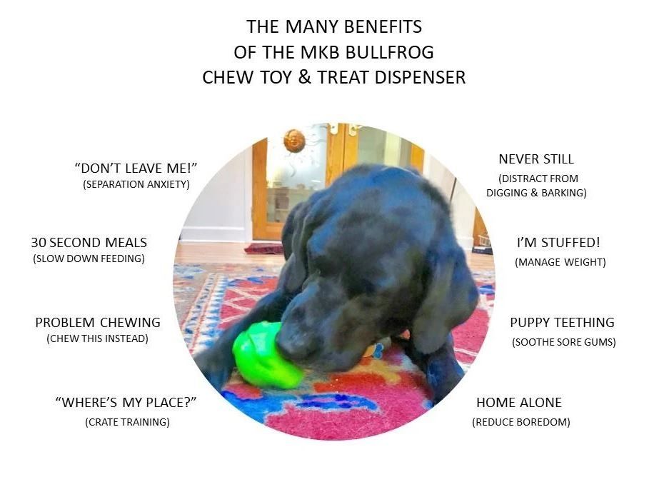 - DURABLE CHEW TOY: The Bull Frog Treat Dispenser is designed to withstand the abuse of most "power chewer" dogs.