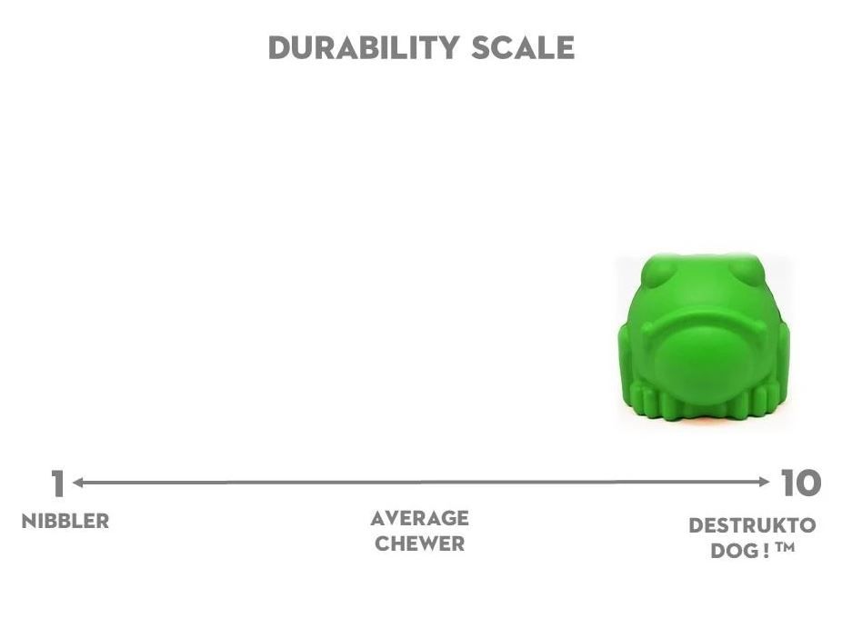 DURABLE CHEW TOY: The Bull Frog Treat Dispenser is designed to withstand the abuse of most "power chewer" dogs.
