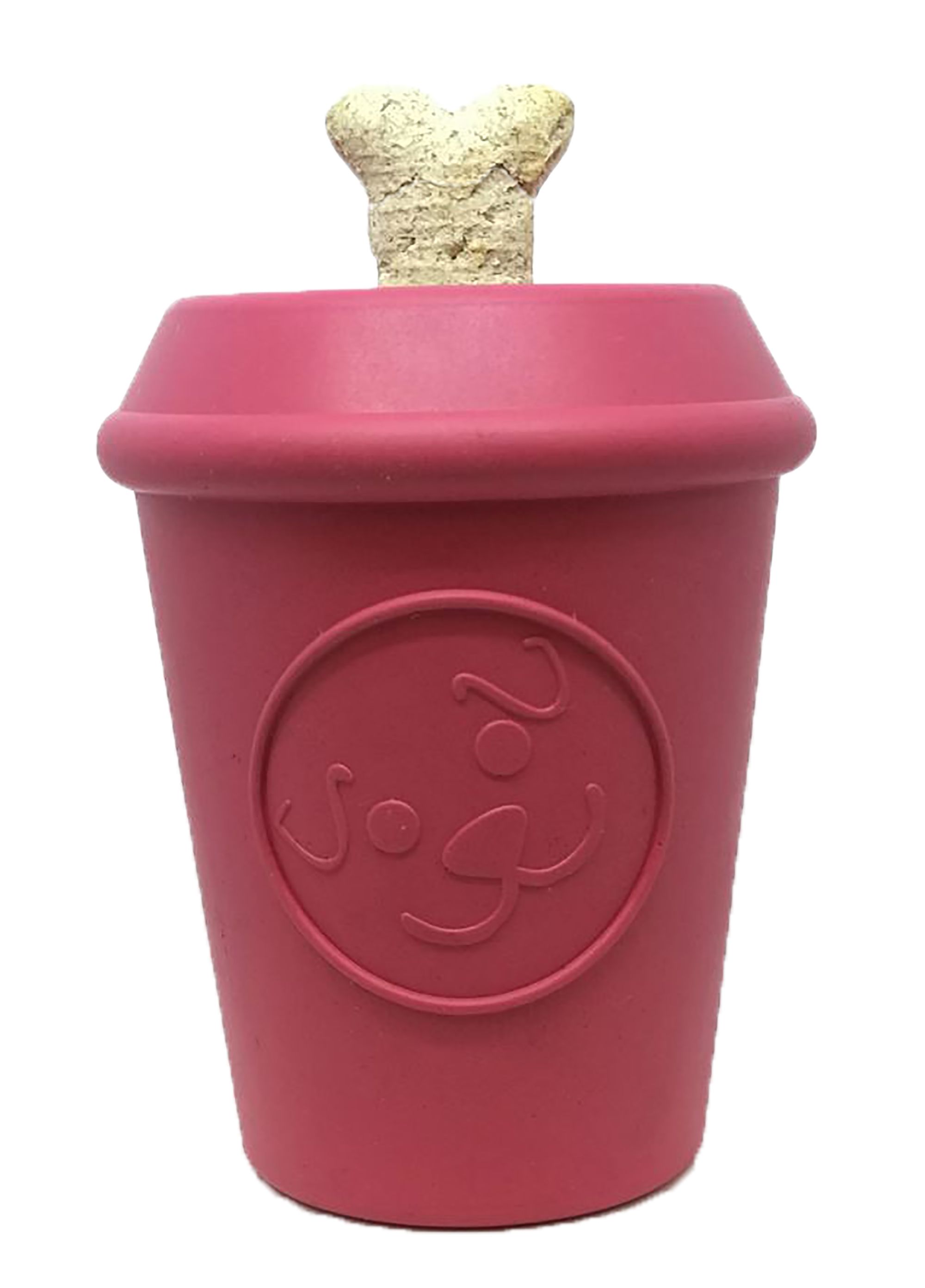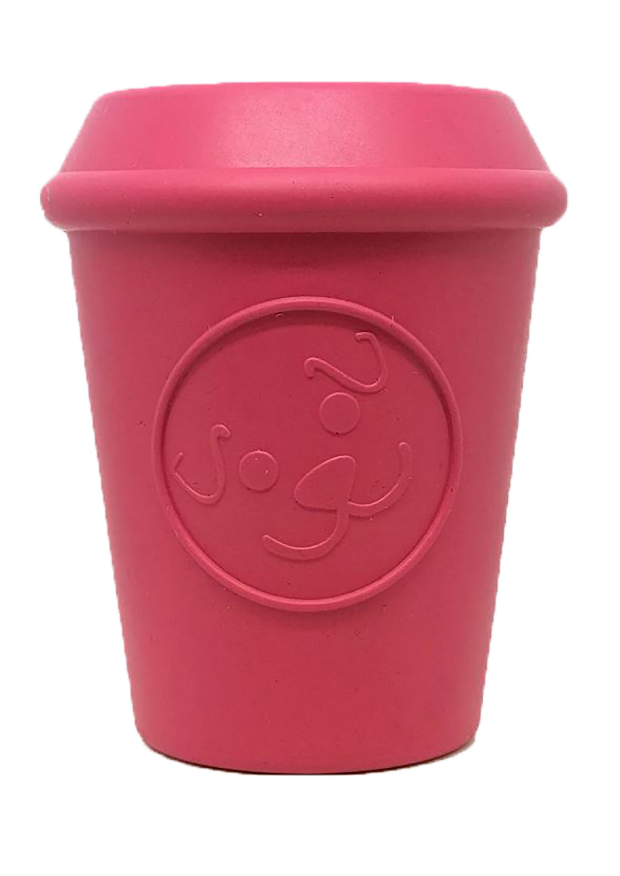 MKB Coffee Cup Durable Rubber Chew Toy & Treat Dispenser - Pink - Large