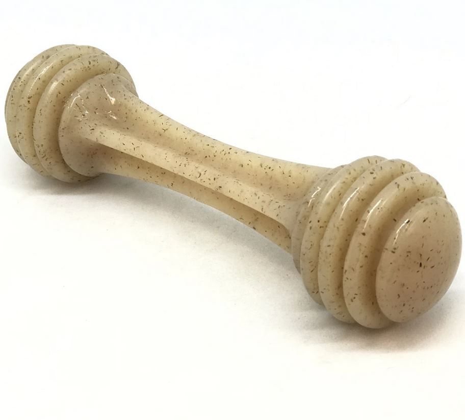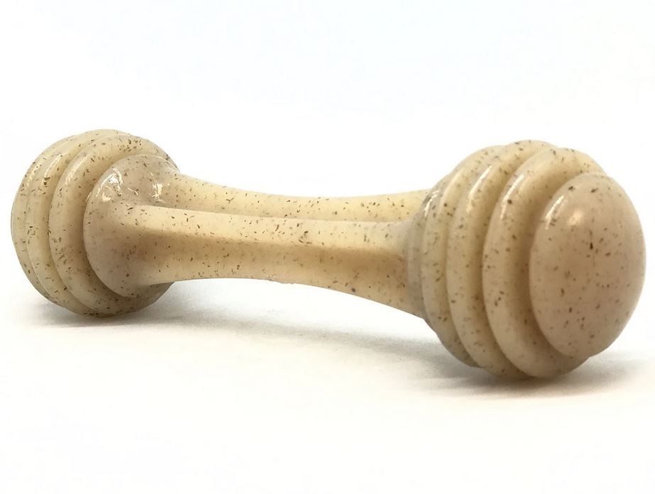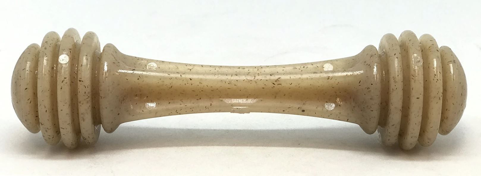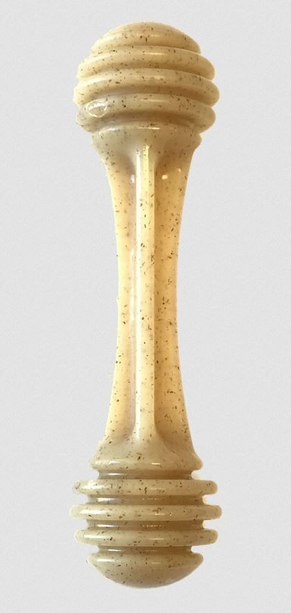 POWER CHEWERS: This ultra-durable nylon bone toy in the shape of a honey dipper is designed and built to withstand even the most aggressive chewers. This toy helps keep your dog entertained and solves problem chewing behaviors. Made from an innovative nylon and wood composite material.