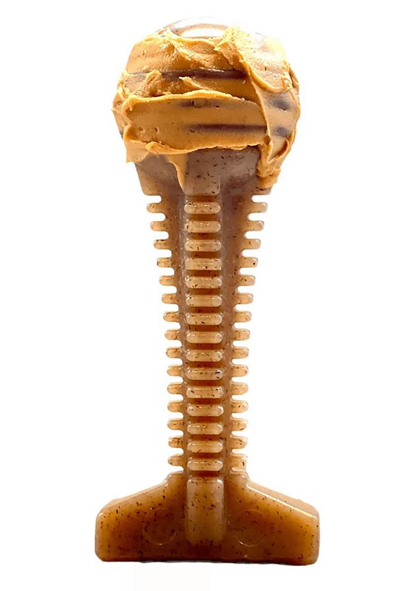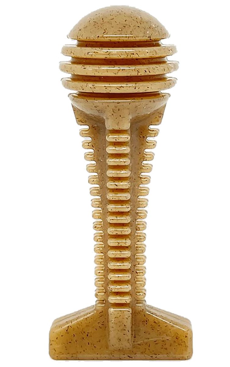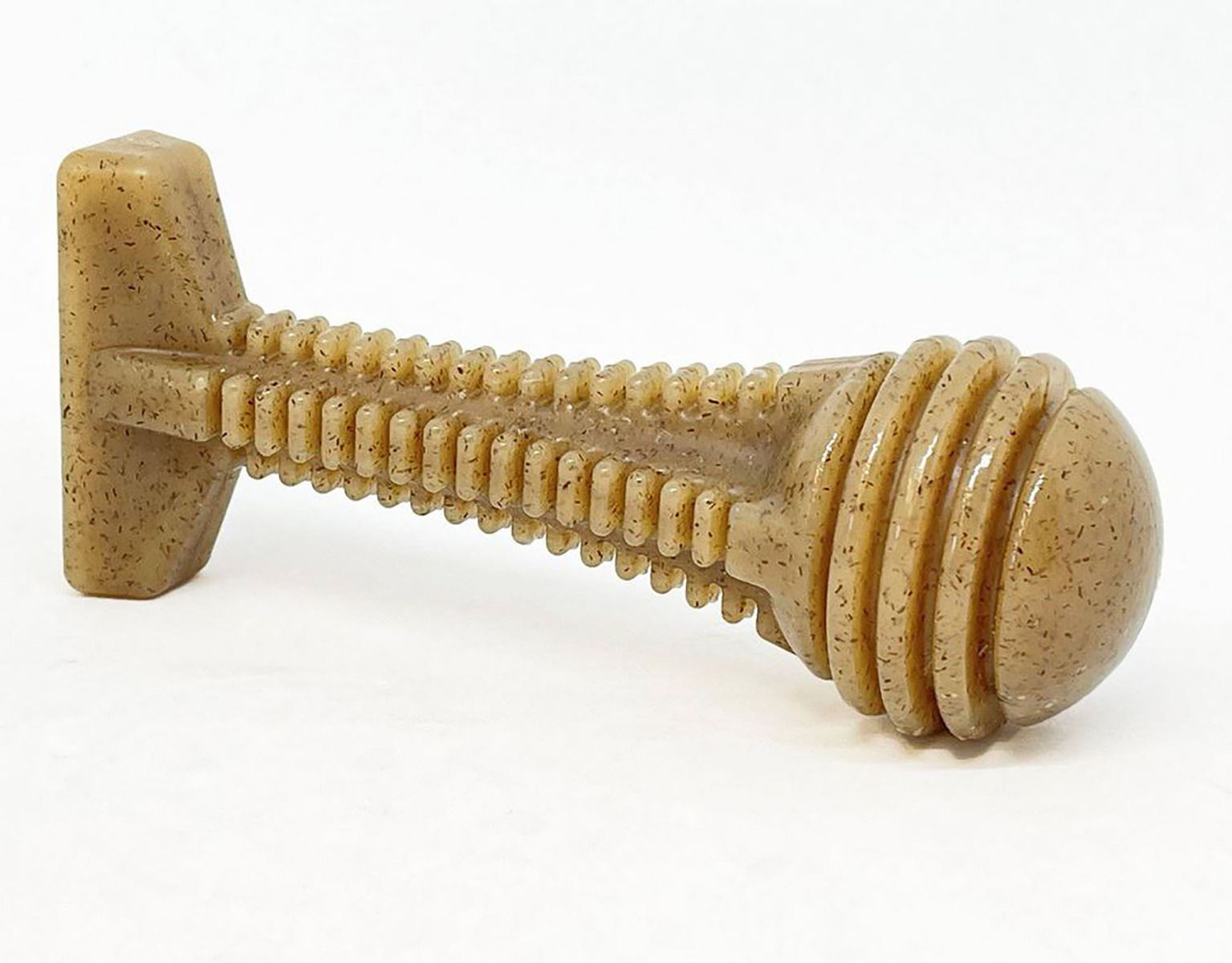POWER CHEWERS: This ultra-durable nylon bone toy in the shape of a honey dipper is designed and built to withstand even the most aggressive chewers. This toy helps keep your dog entertained and solves problem chewing behaviors. Made from an innovative nylon and wood composite material.