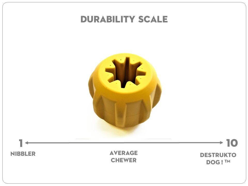 Power Chewer Toy: Ultra-durable gear-shaped chew toy and treat holder. Perfect for holding large treats like Milk Bones and Himalayan Yak Chews.