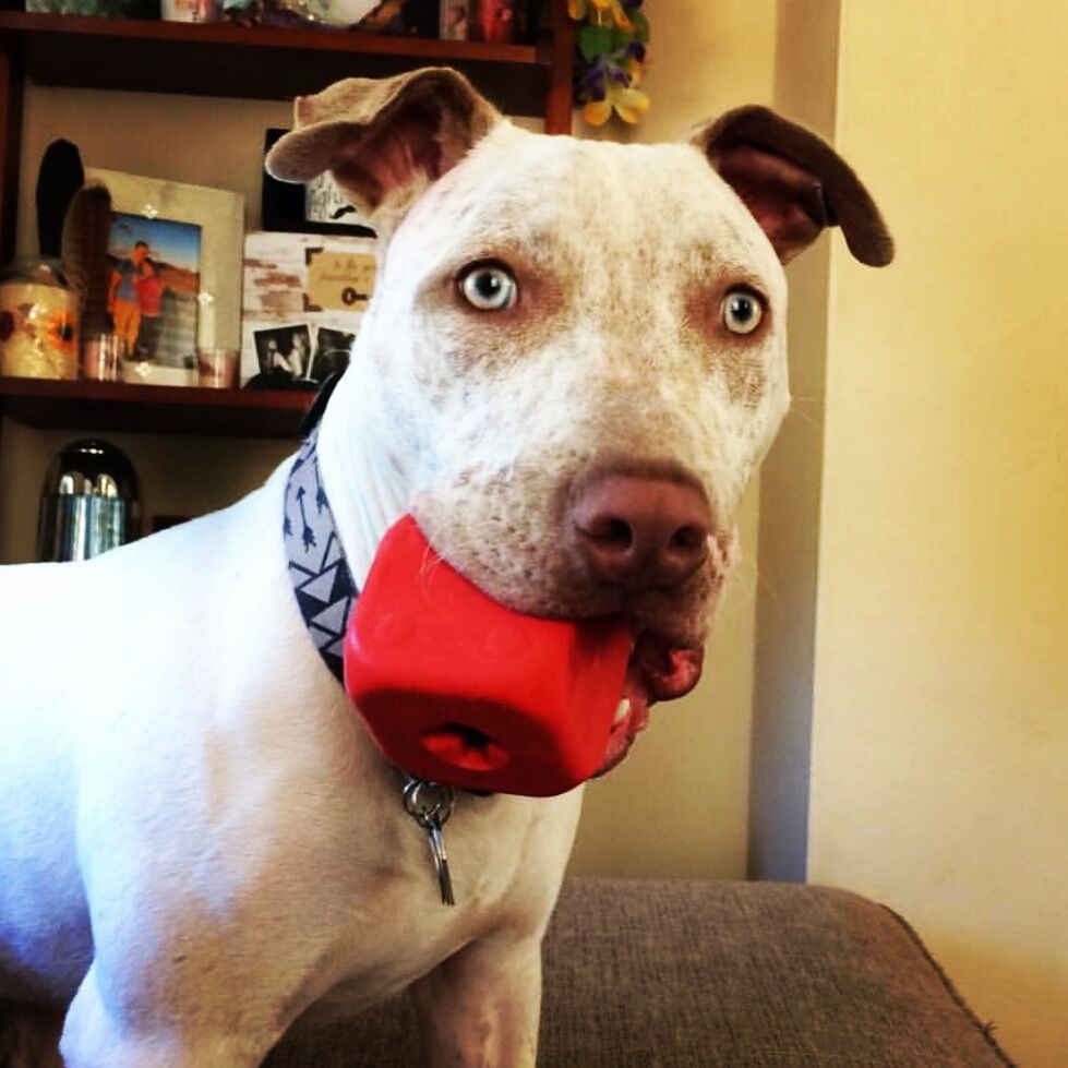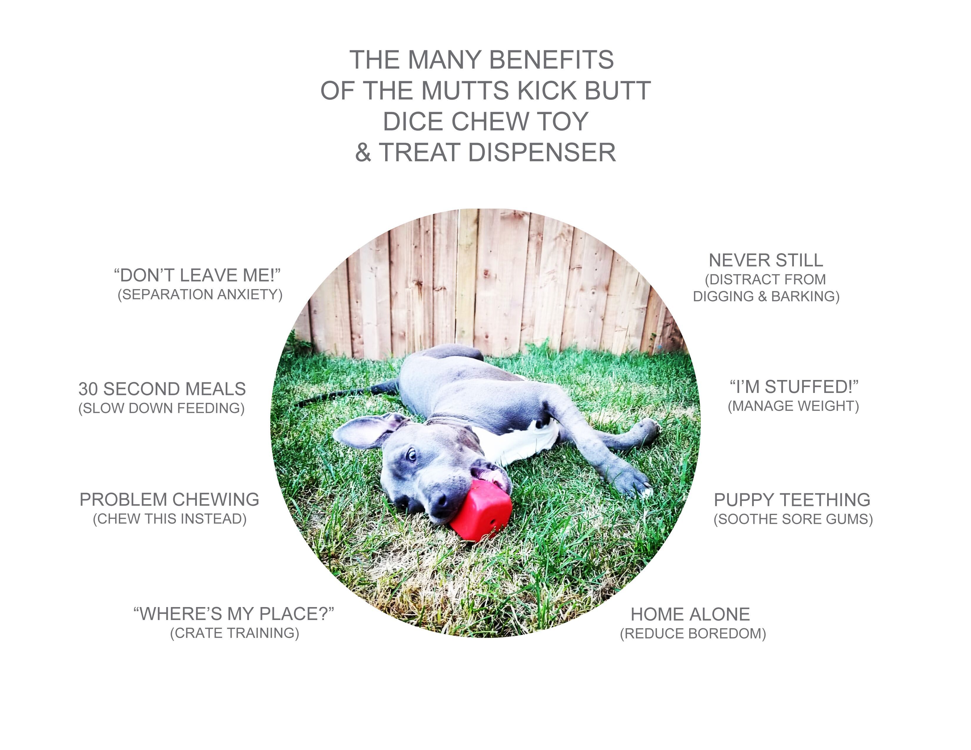 Dispenses Treats: Help your dog fight boredom by filling the Dice Toy with kibble and dog treats. The toothed opening helps retain treats, creating a greater challenge for your dog to get at the goodies inside.