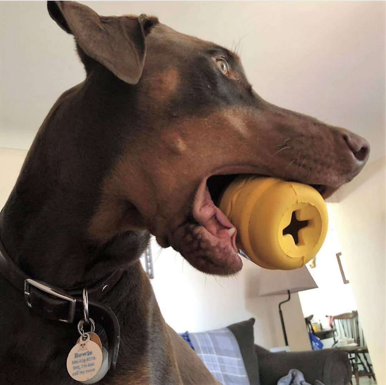 Dispenses Treats: Help your dog fight boredom by filling the CheeseburgerToy with kibble and dog treats. The toothed opening helps retain treats, creating a greater challenge for your dog to get at the goodies inside.