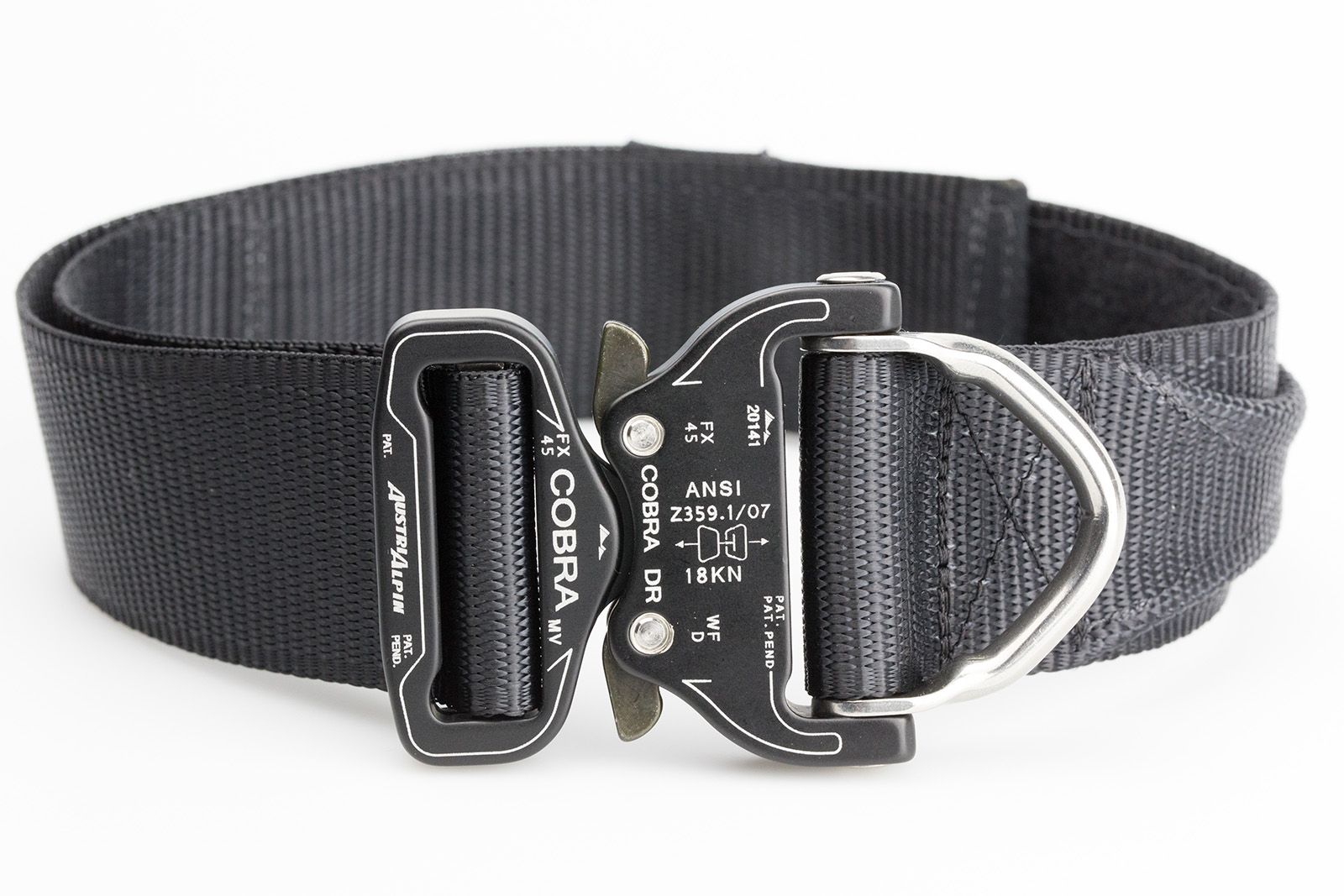 The buckle is the AustriAlpin ANSI D-Ring Cobra with a 4000lbs breaking strain