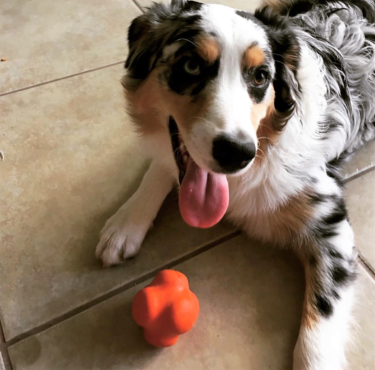 Dog Ball: Stimulating and entertaining for dogs with its unique design for erratic bounce. The solid natural rubber design provides strength yet enough give to hold up while still stimulating their chompers