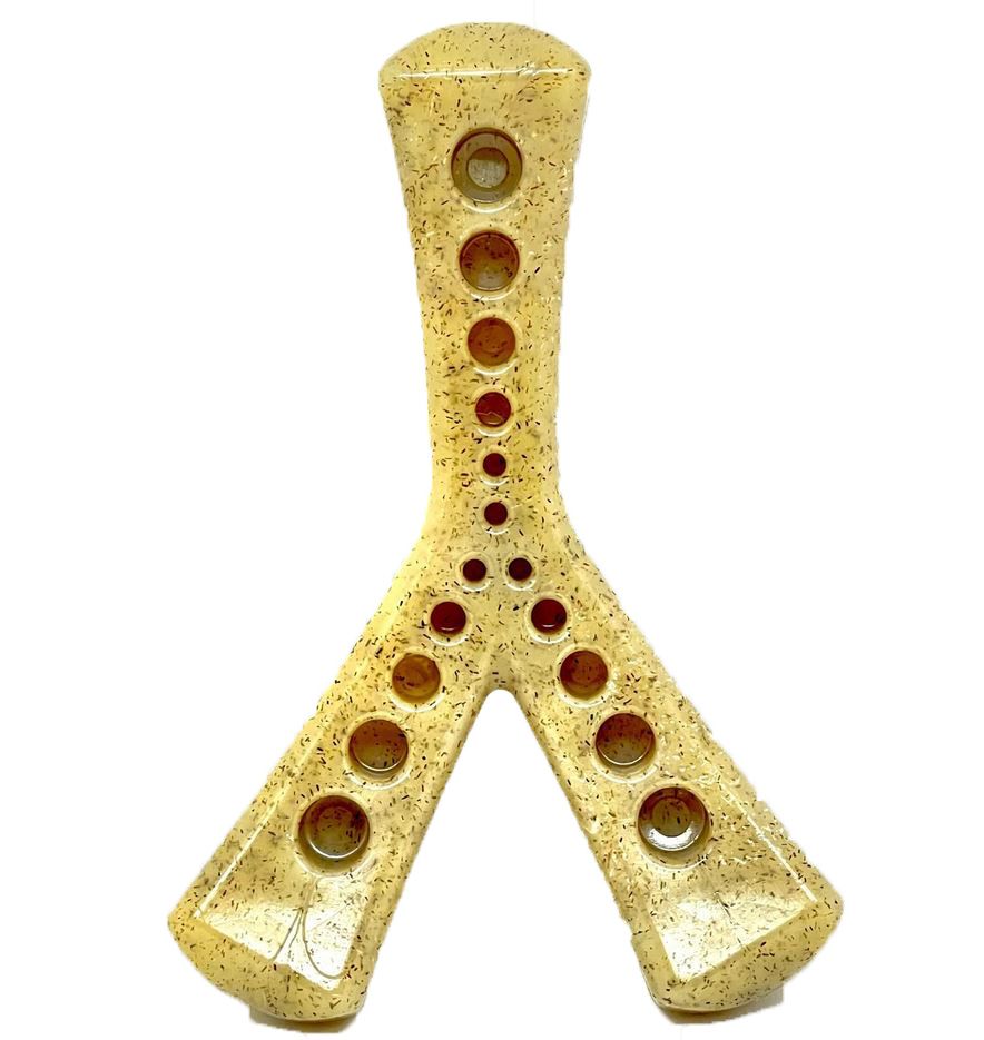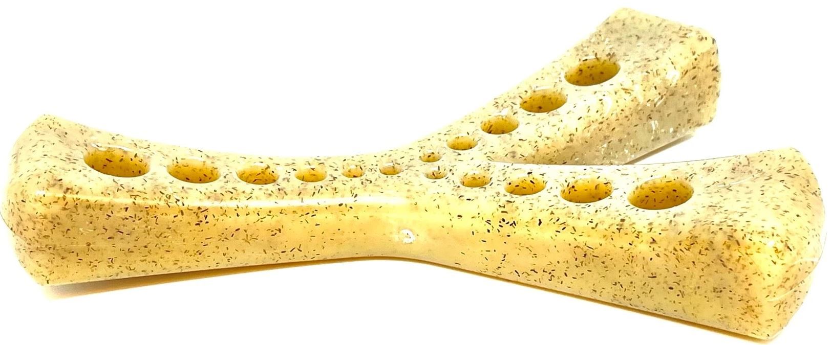 - TREAT DISPENSING: This ultra-durable nylon bone toy has holes in it perfect for smearing peanut butter and other soft foods into.