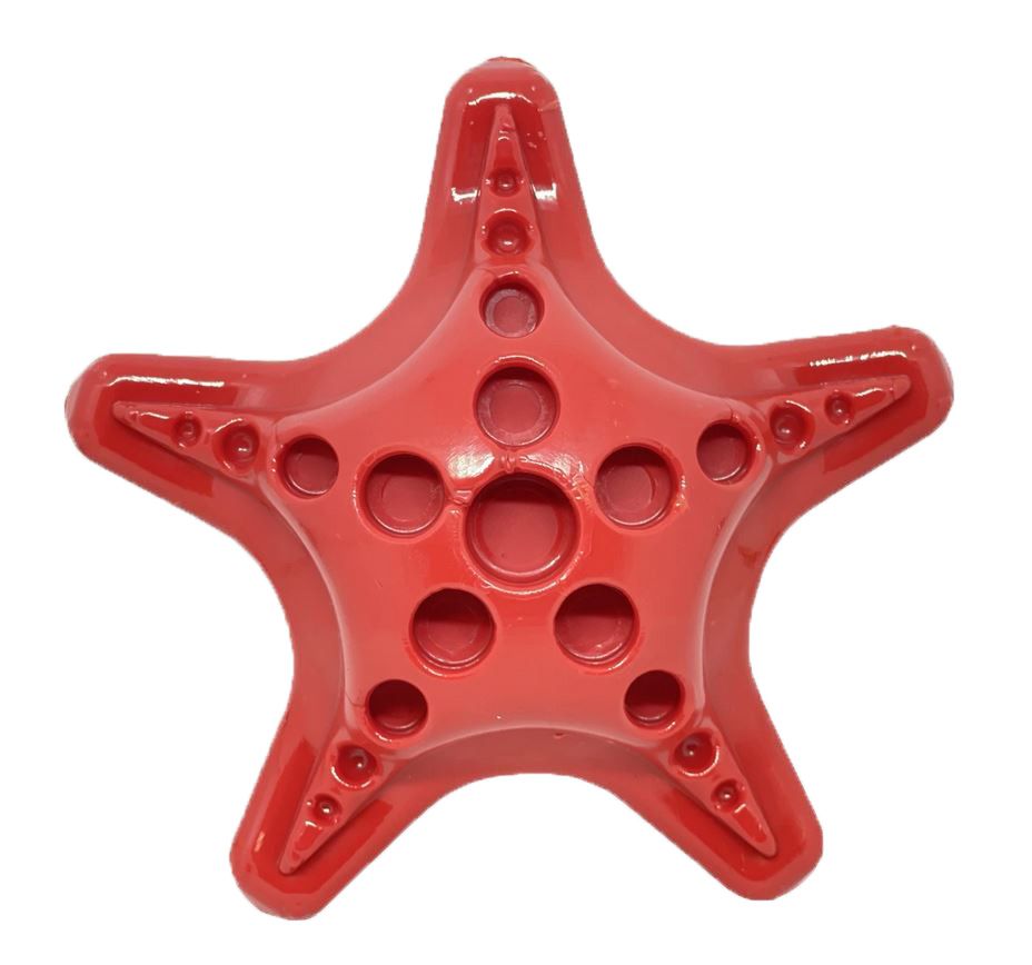 - POWER CHEWERS: A starfish that dispenses peanut butter! Spread peanut butter into the holes on this durable nylon toy to give your dog a fun and rewarding challenge. This ultra-durable nylon toy in the shape of a peanut is designed and built to withstand even the most aggressive chewers. This toy helps keep your dog entertained and solves problem chewing behaviors. Made from an innovative nylon and wood composite material.