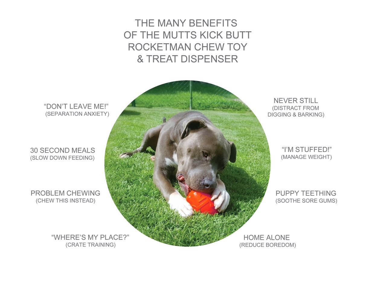 Dispenses Treats: Help your dog fight boredom by filling the Rocket Man with treats like kibble, canned dog food, peanut butter, or your favorite dog treat recipe. Best results: mix wet/dry foods. Freeze with treats inside to prolong use.