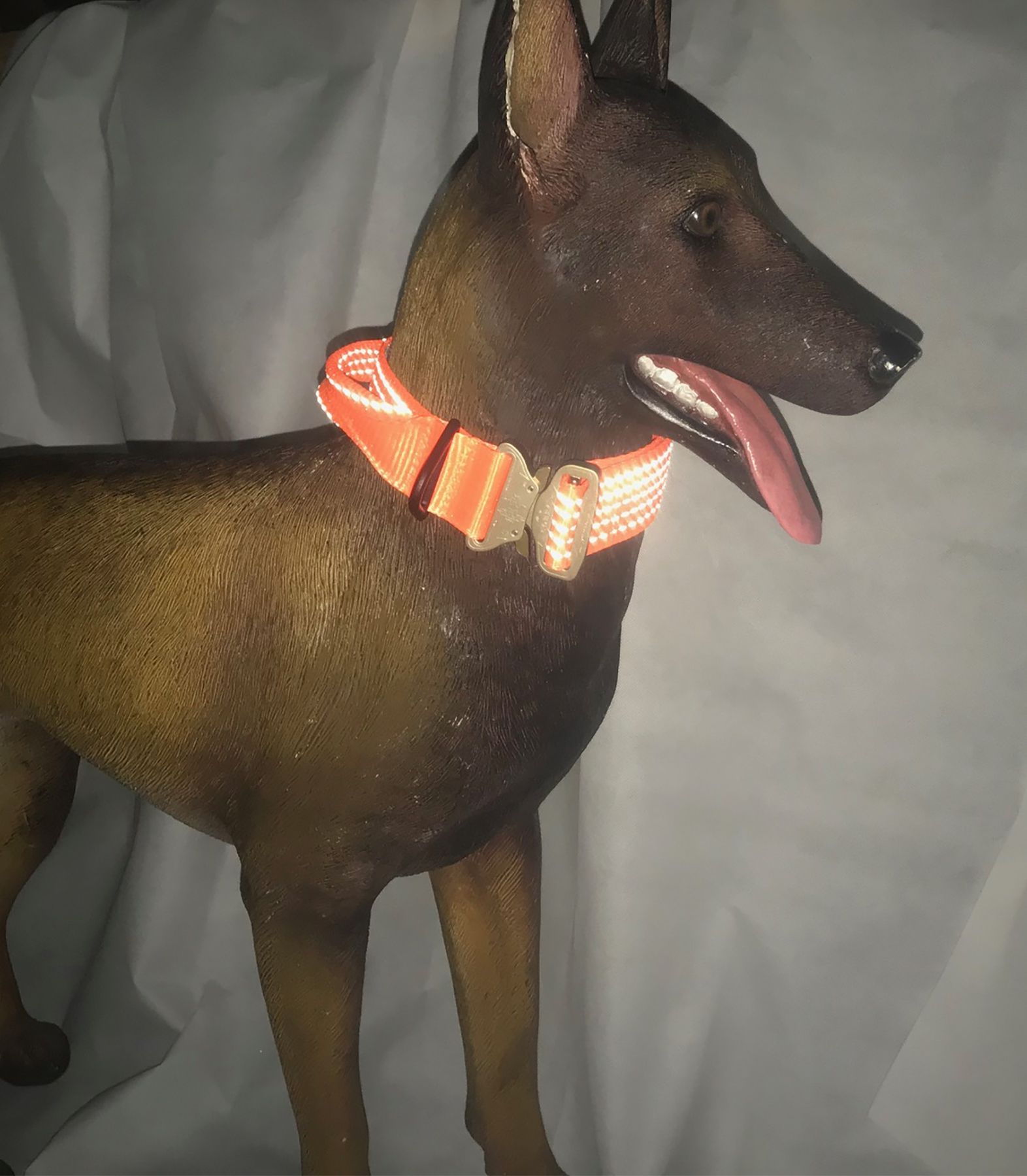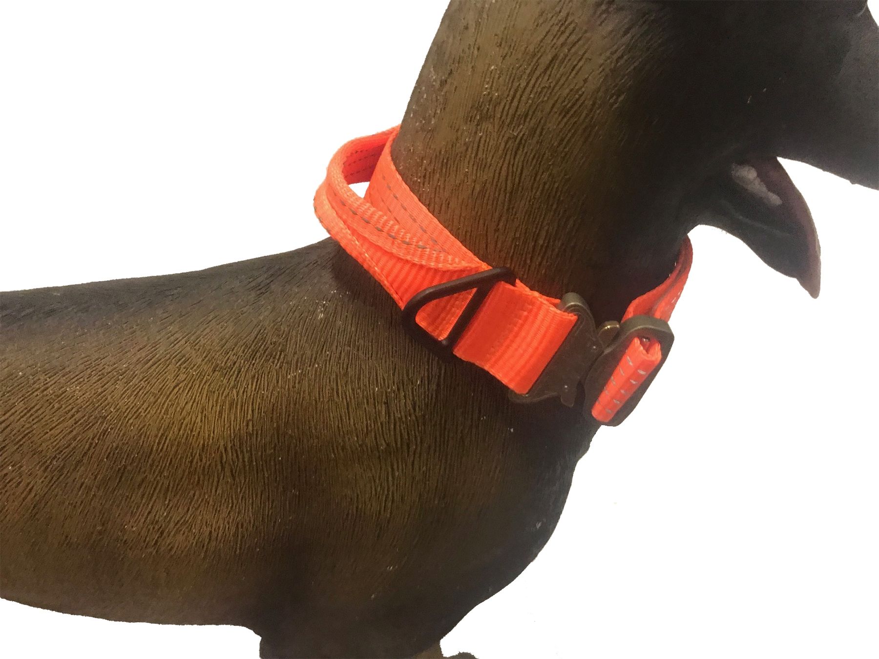 The collar was designed for Security, Law Enforcement and Military use, however it has been made in the Orange reflective webbing for those who just want the worlds strongest collar and also want to keep there dof safe and be able to find it at night quickly.