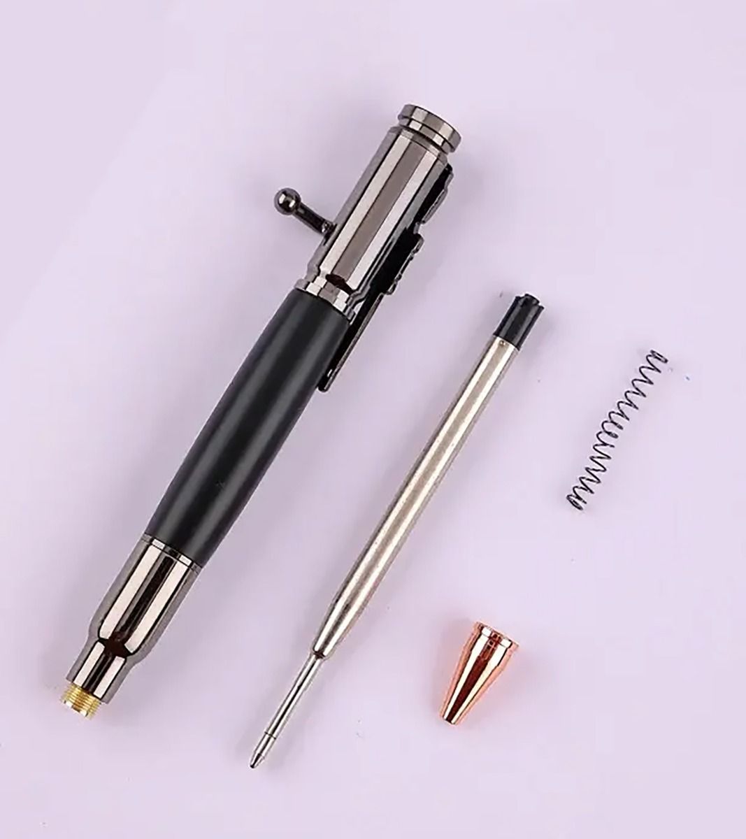 Rifle-Themed Bolt Action Metal Pen – A durable, bullet-shaped pen with a rifle clip and smooth bolt-action mechanism, perfect for enthusiasts and collectors.