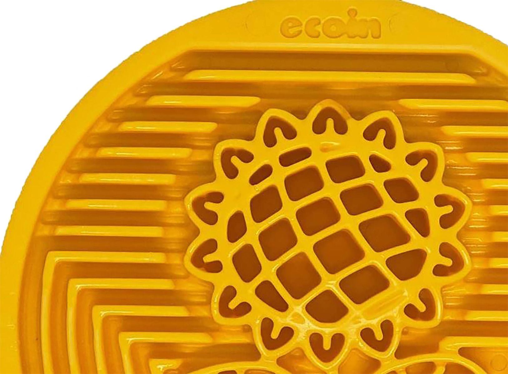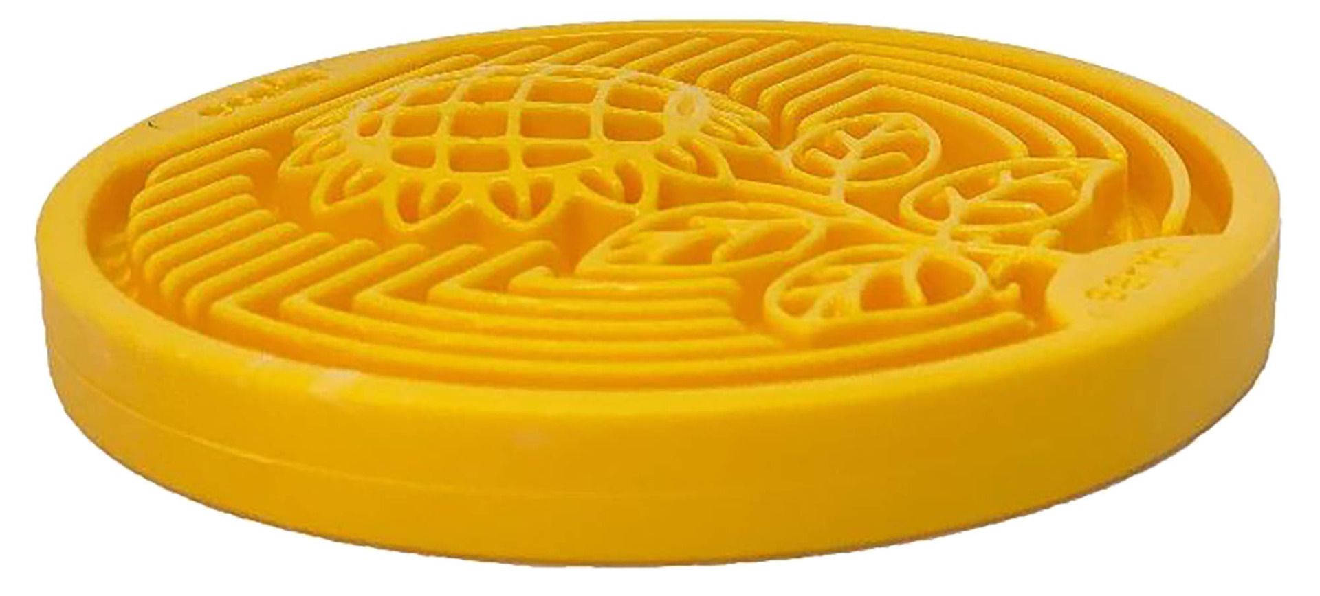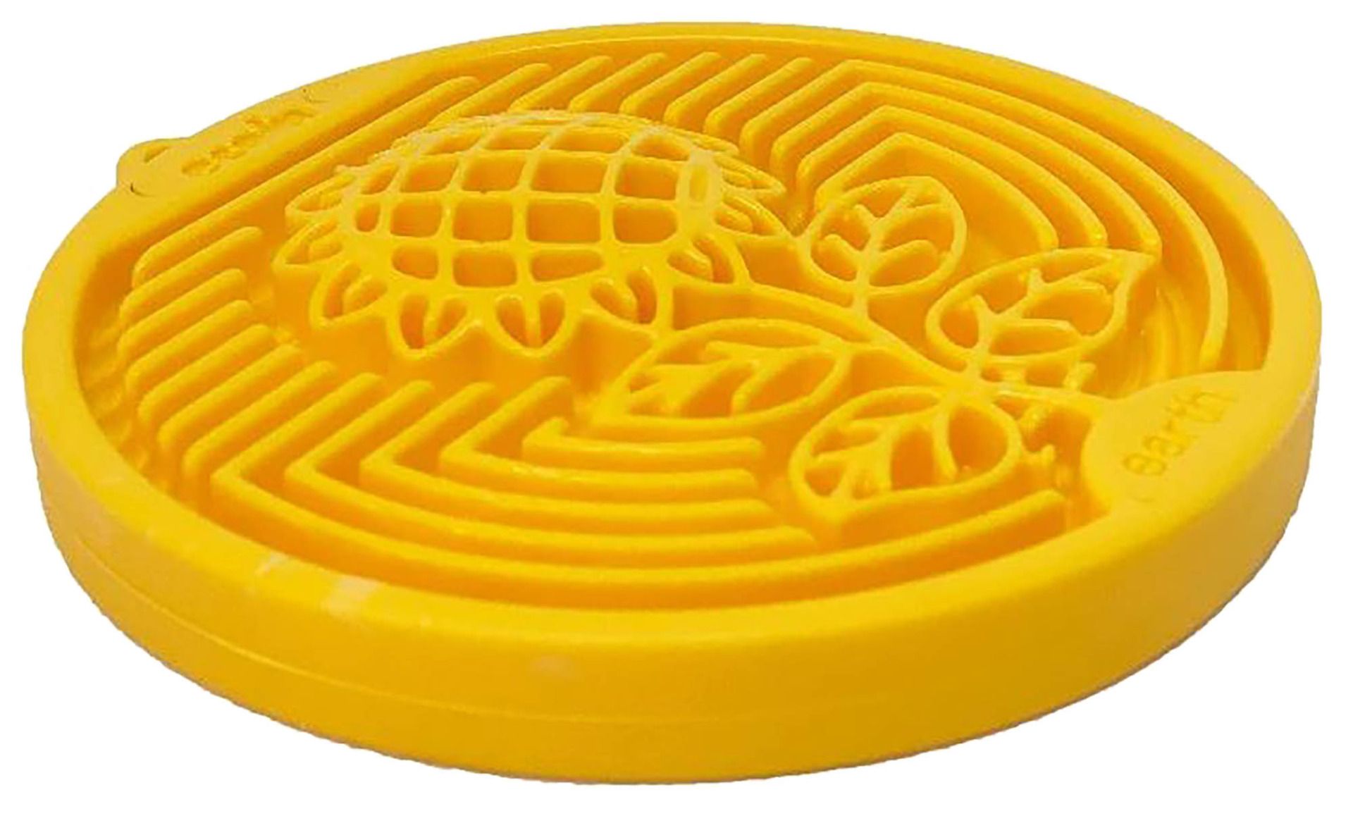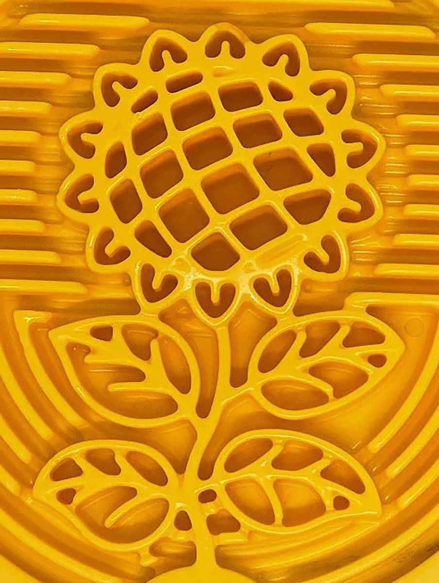 ENRICHMENT: This ultra-durable nylon ecoin with a sunflower motif is designed for enrichment snacks and built to withstand those excitable dogs that sometimes chew up their lick mats. This toy helps keep your dog entertained and solves problem chewing behaviors. Smear soft foods into the surface and let your dog lick away!